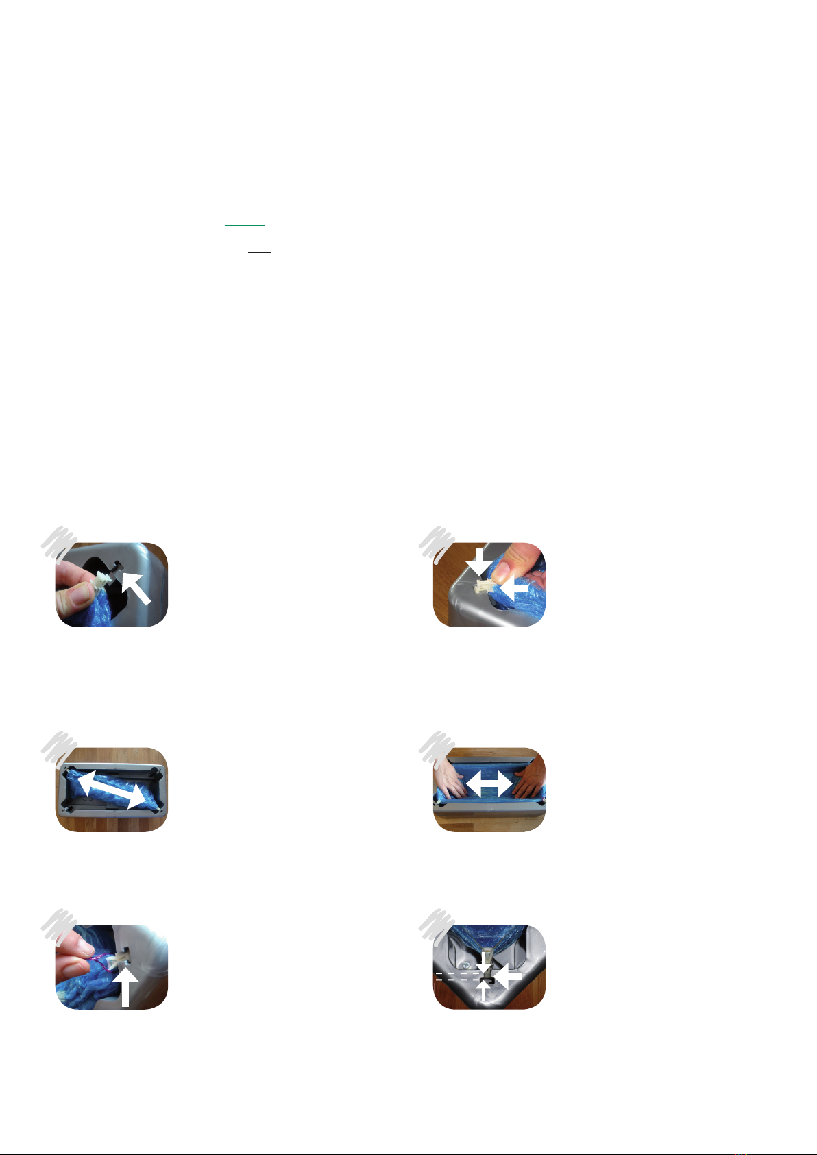 2. Werden mehrere Nachfüllpakete eingesetzt, beachten Sie, dass die T-Clips der bereits eingesetzten Überziehschuhe nach hinten und gleichzeitig mit den neuen T-Clips nach unten gedrückt werden.
