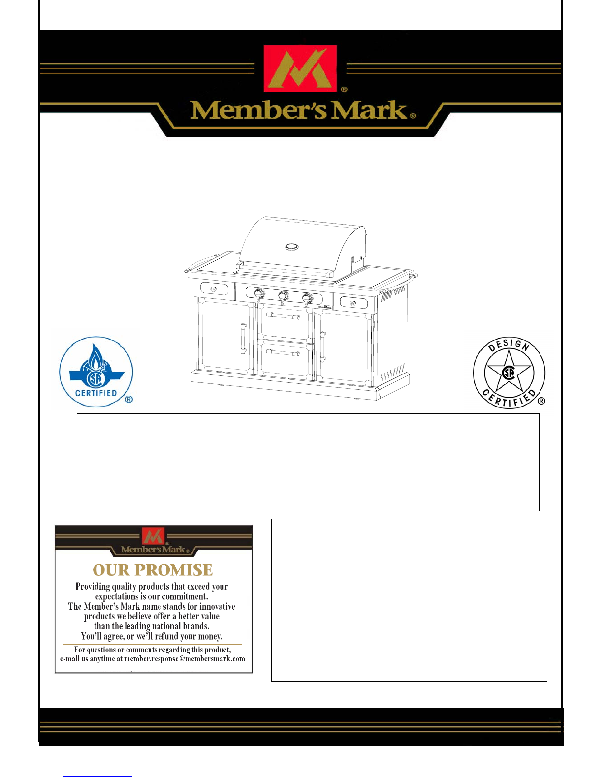 Thanks for purchasing a Member’s Mark Grill. We’re here to help you maximize your enjoyment and