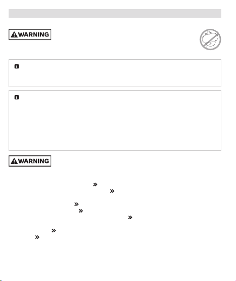 • Liquids, open flames and sources of heat