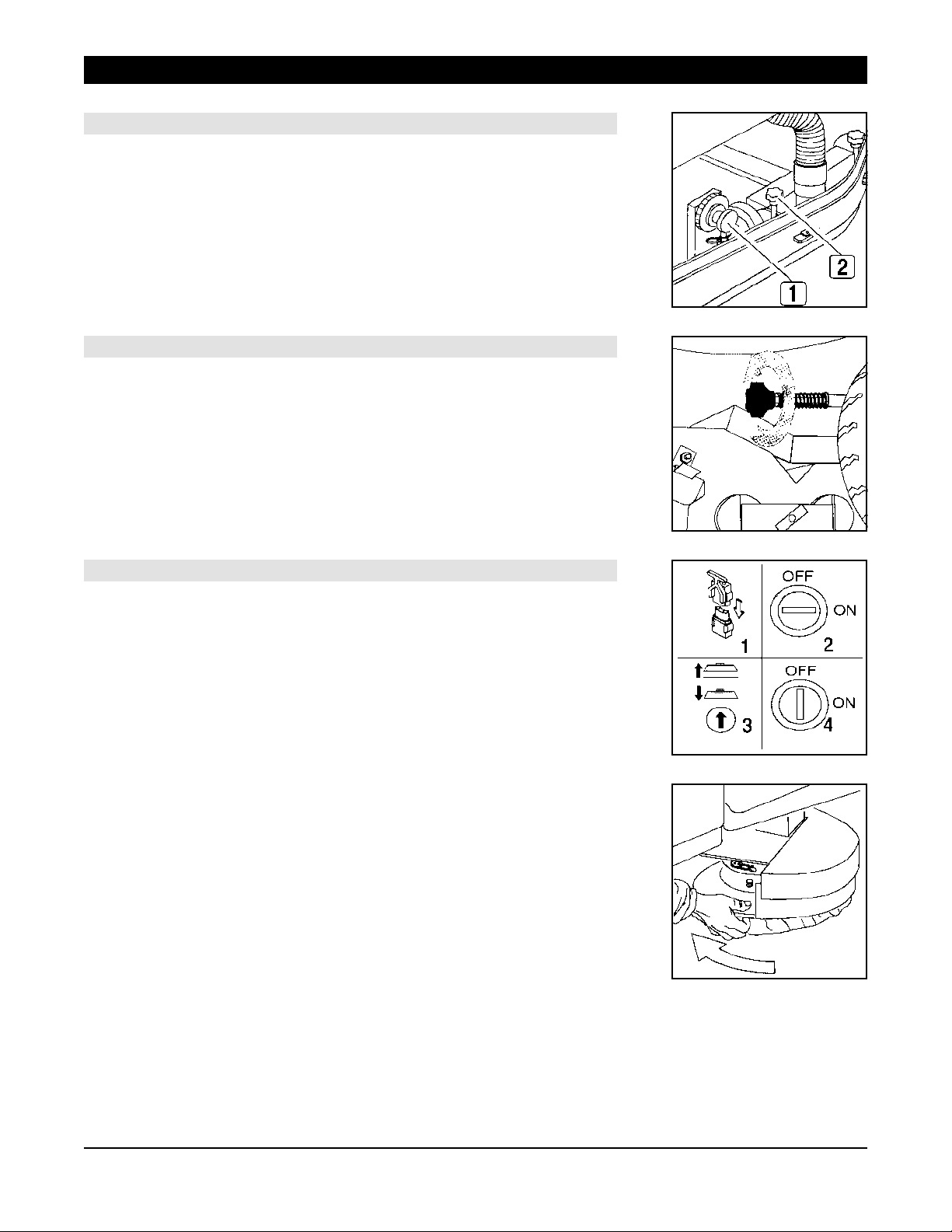 Rotate the knob (2) clockwise (tighten) to lift the squeegee and counterclockwise (loosen)