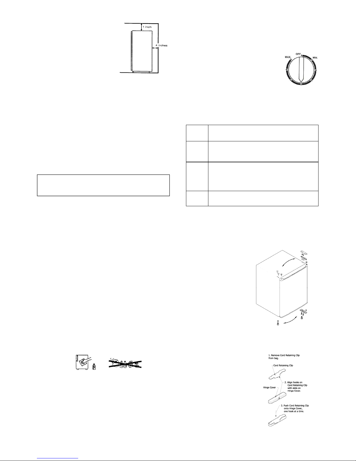 flammable materials. Your refrigerator must be grounded. Use a 120 volt, 60 Hz outlet. If you are using