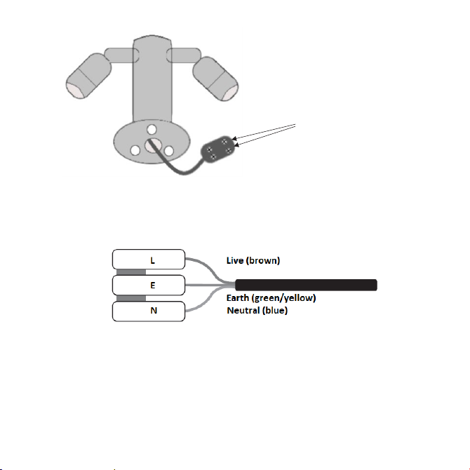 • Connect the luminaire to the mains supply ensuring the correct polarity is observed: L - Live (brown), E -