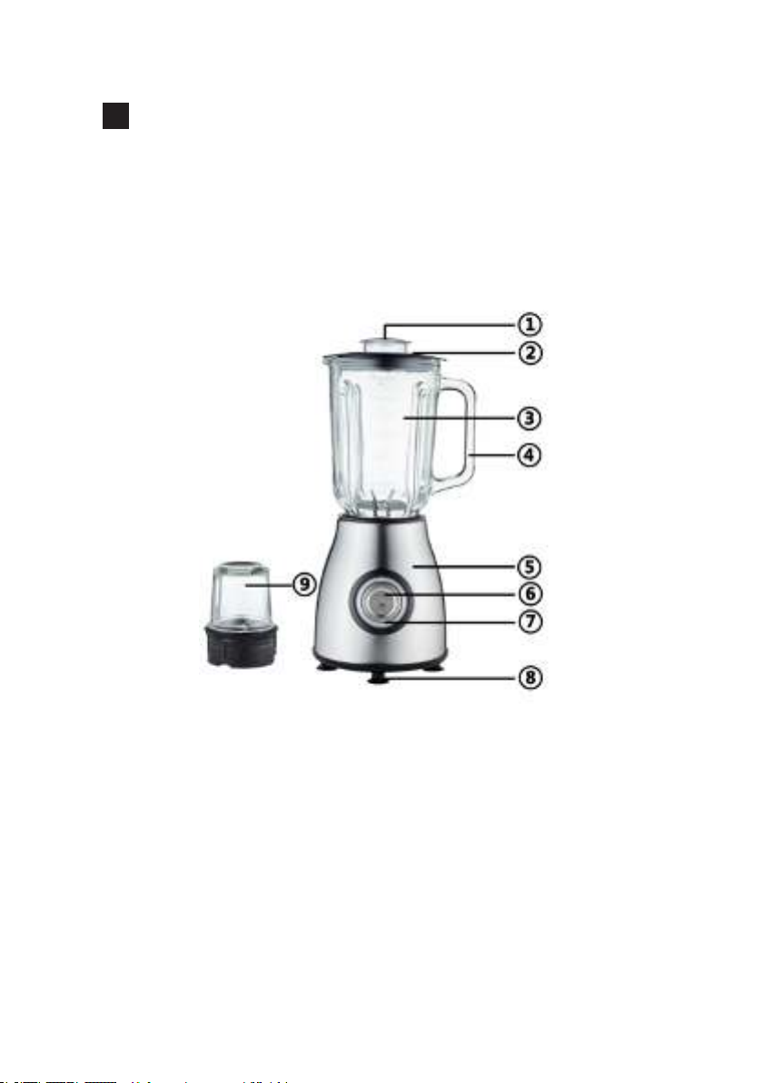 1. Lid 2. Cover 3. 1.5L glass jar