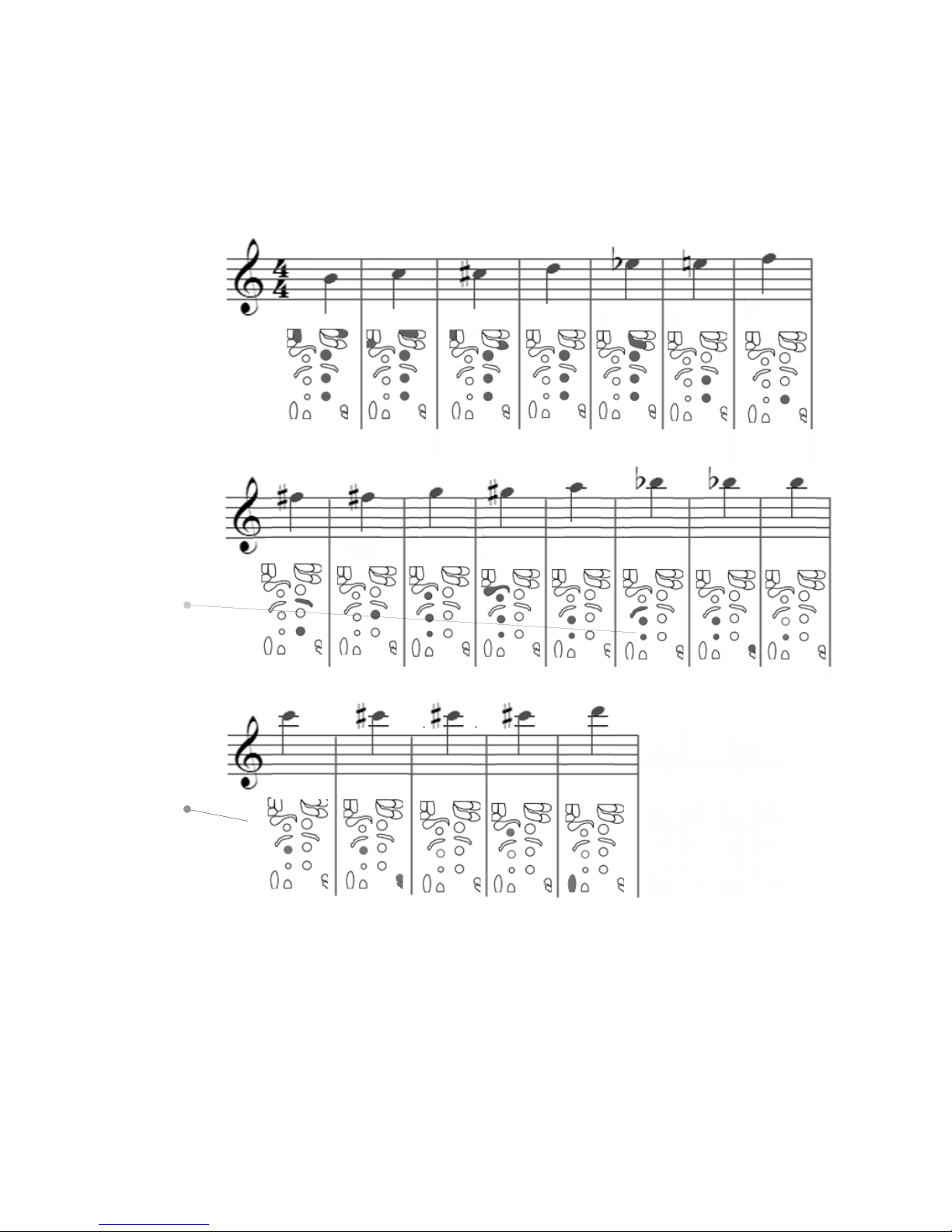width beyond the register break. Similarly, if you want to play a low F, tilt so that the indicator