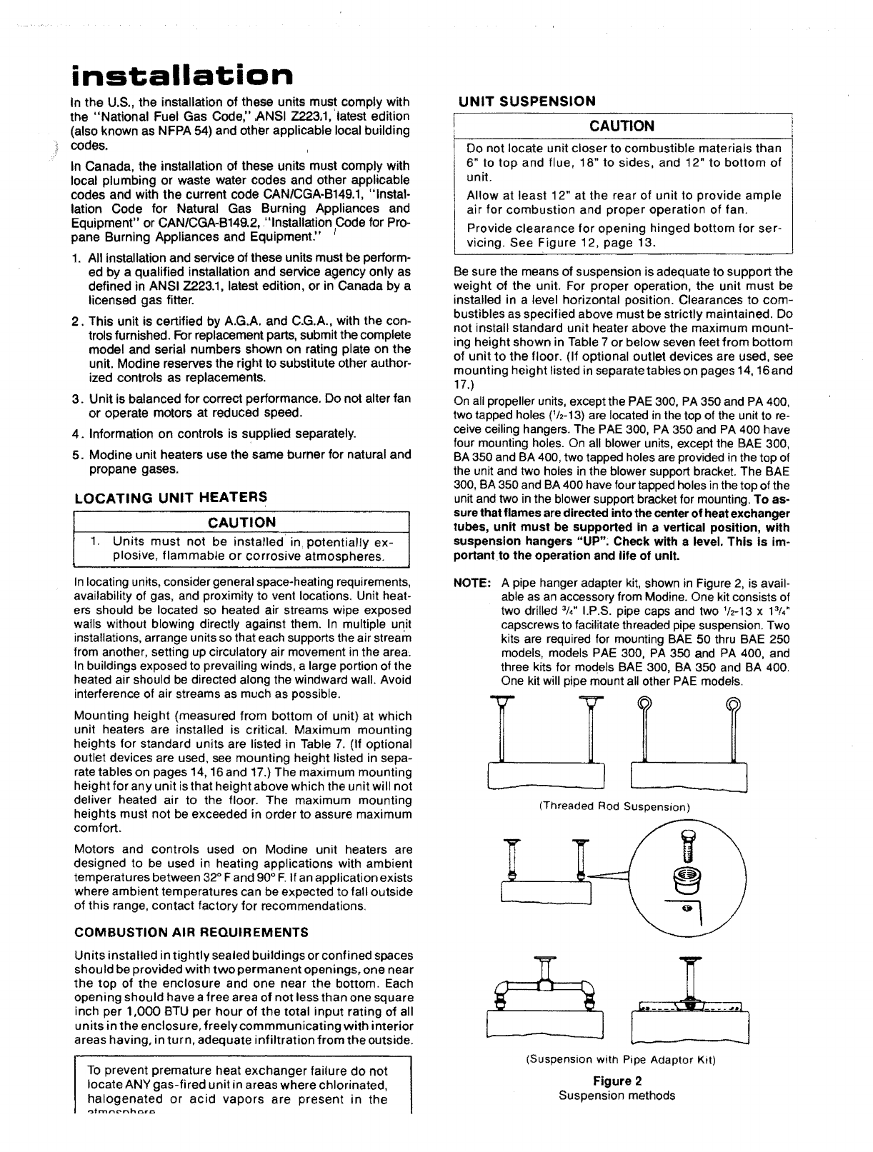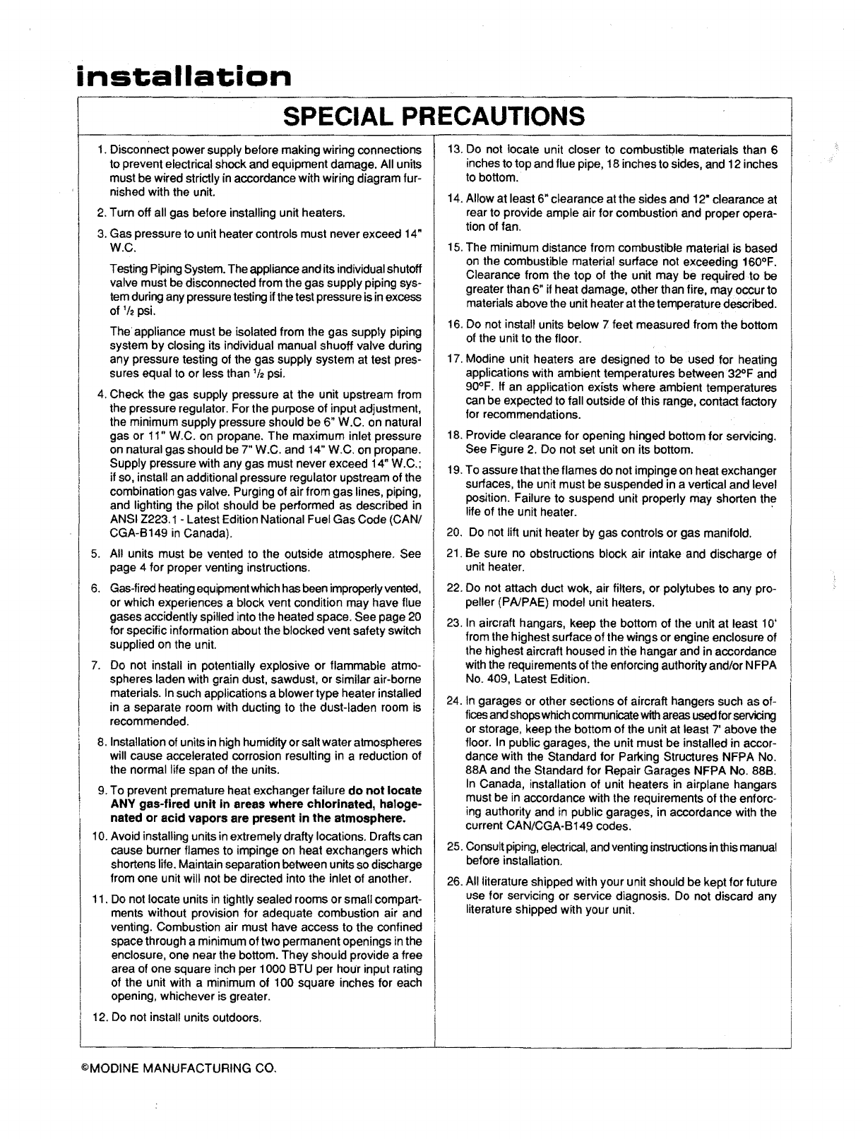 2. Turn off all gas before installing unit heaters.