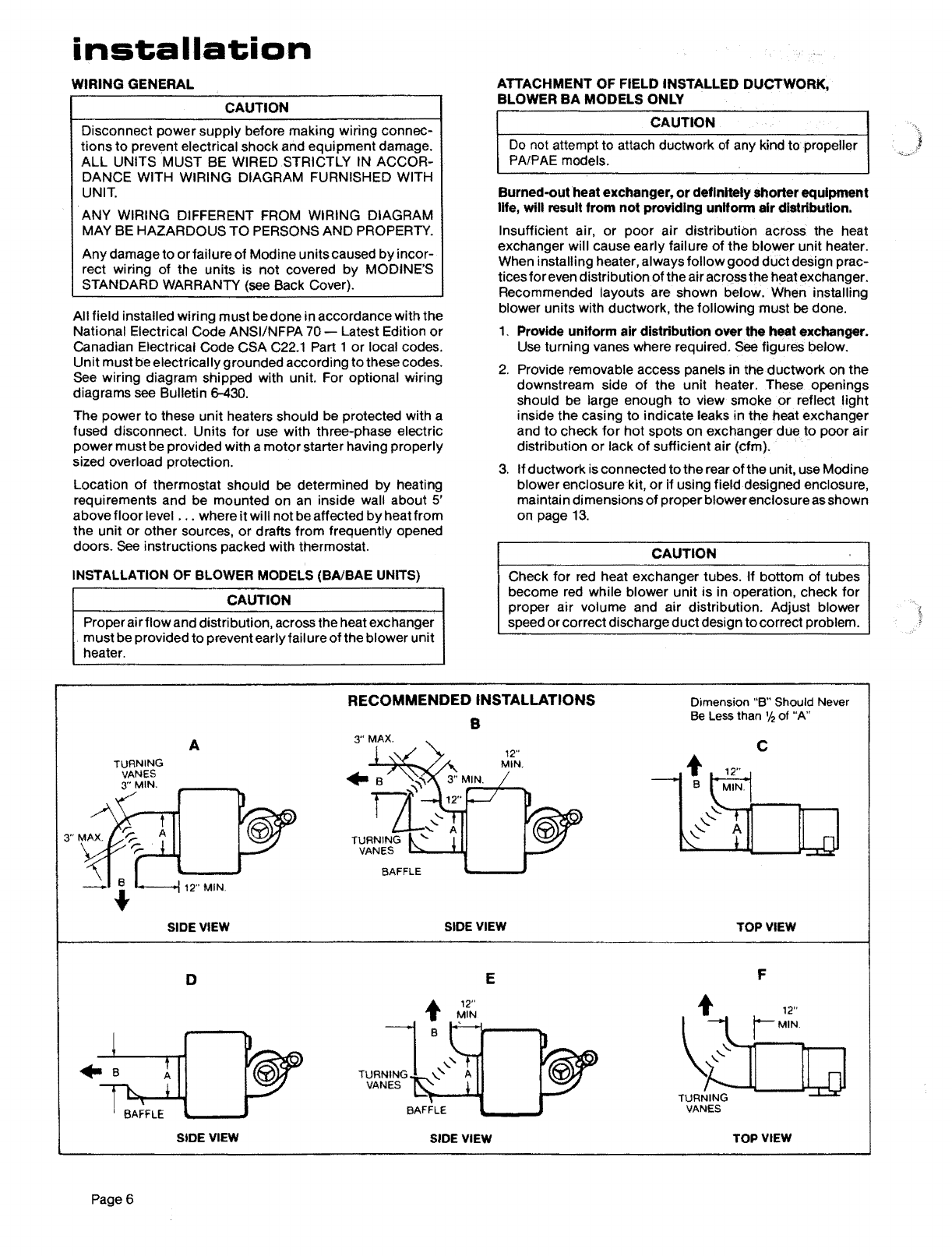 Canada, installation of unit heaters