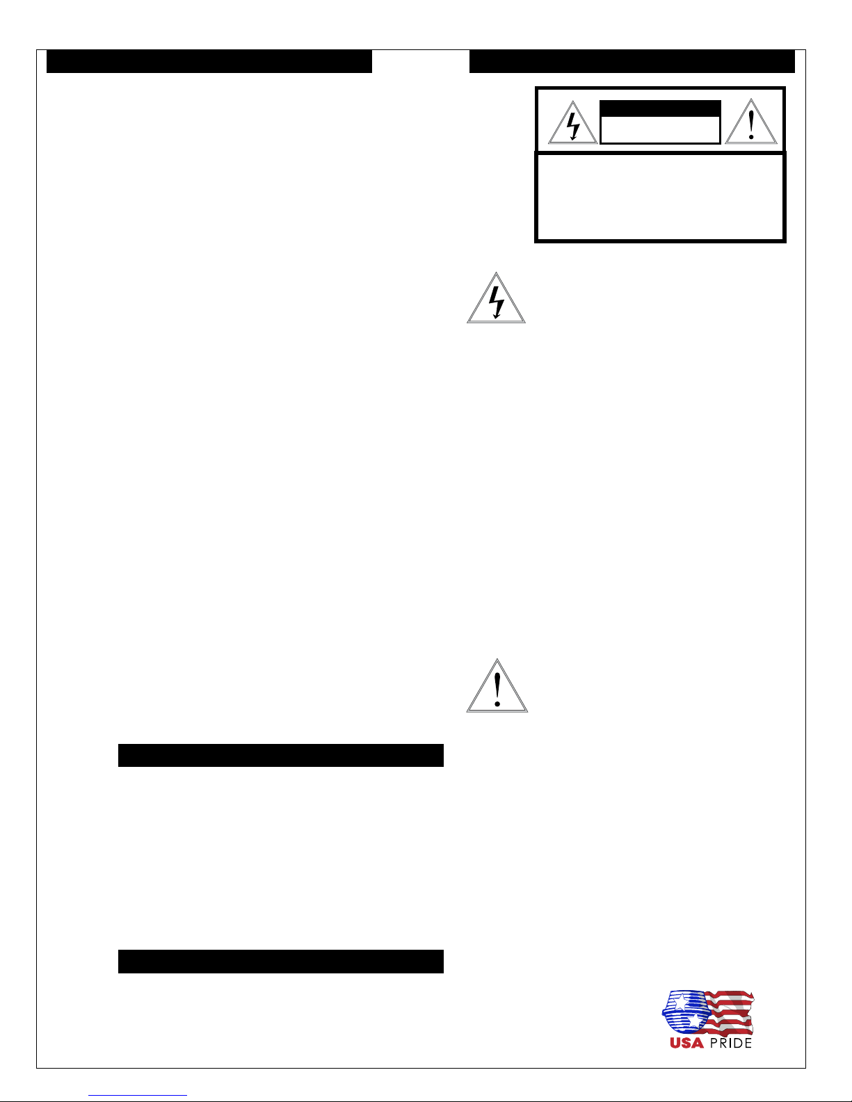 CAUTION: TO REDUCE THE RISK OF ELECTRIC SHOCK,
