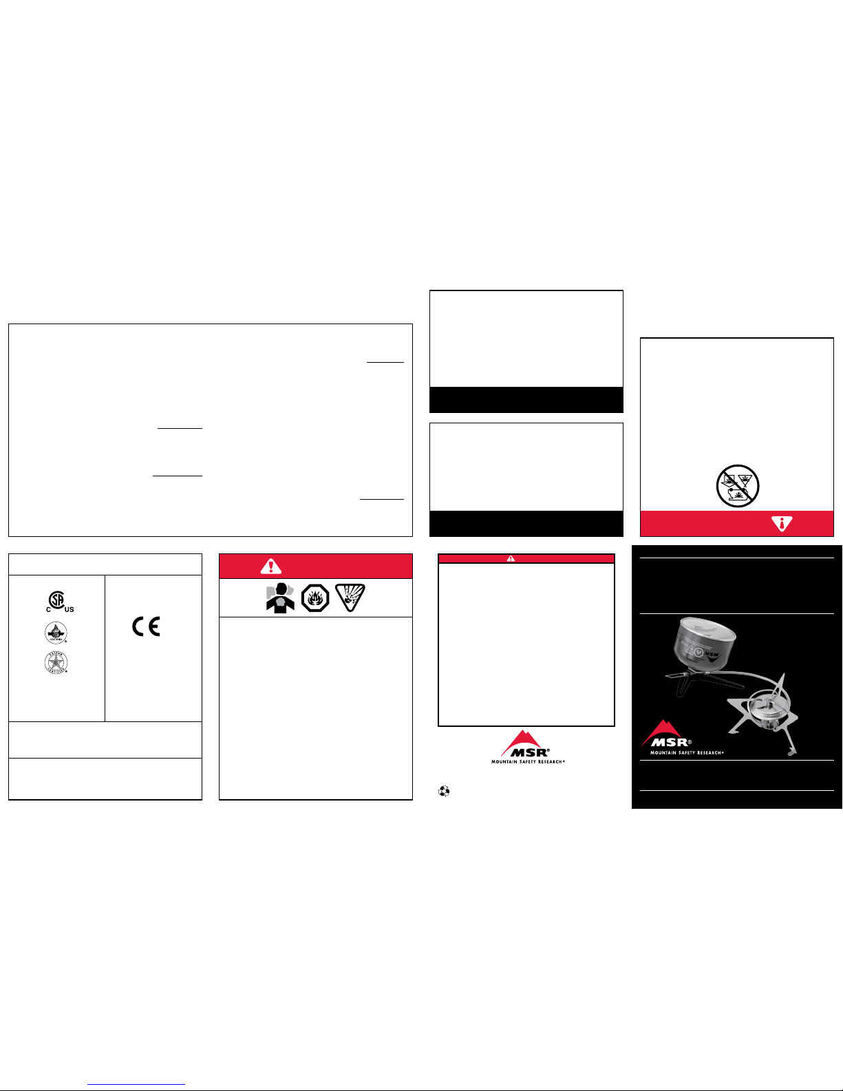 Never use non-MSR®reflectors or diffusers. Use of stove in any of the