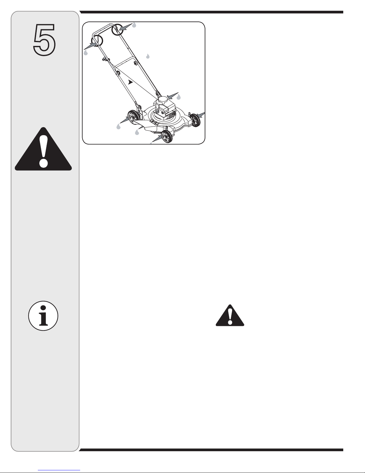 13. To reduce fire hazard, keep mower free of grass, leaves, or