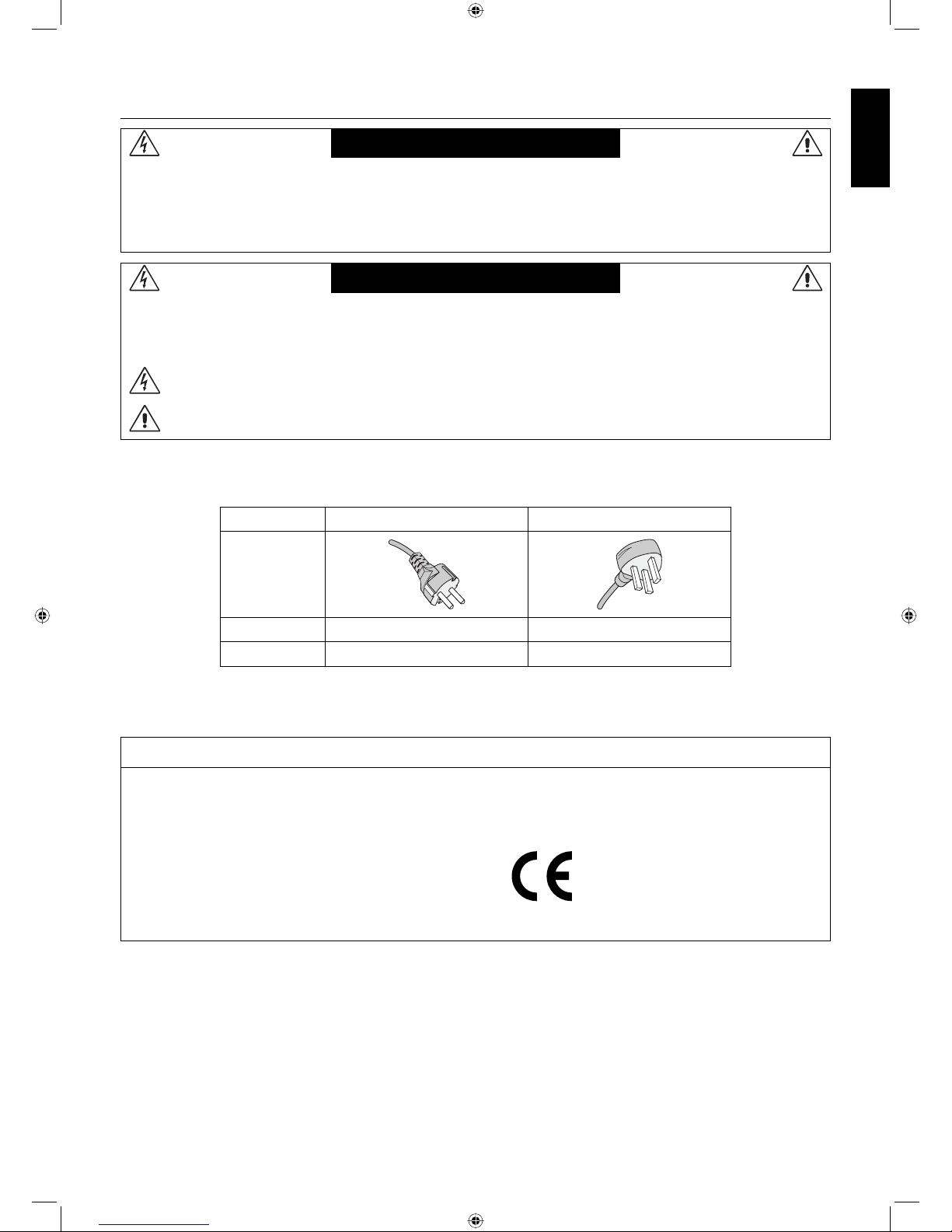 CAUTION: Please use the power cord provided with this monitor in accordance with the table below. If a power cord is not