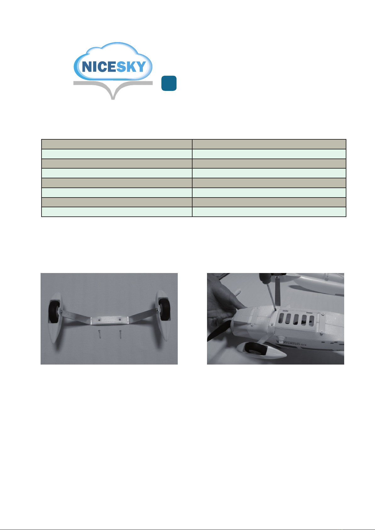 usind the supplied screw. Plastic wing struts