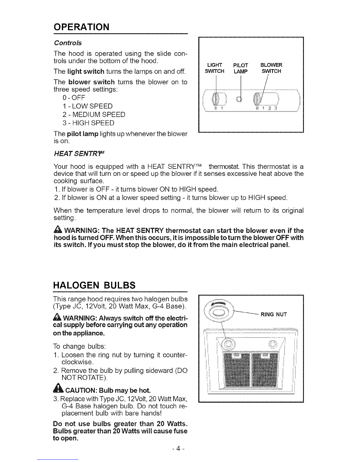 6. Your hood motor has a thermal overload which will automatically shut off the