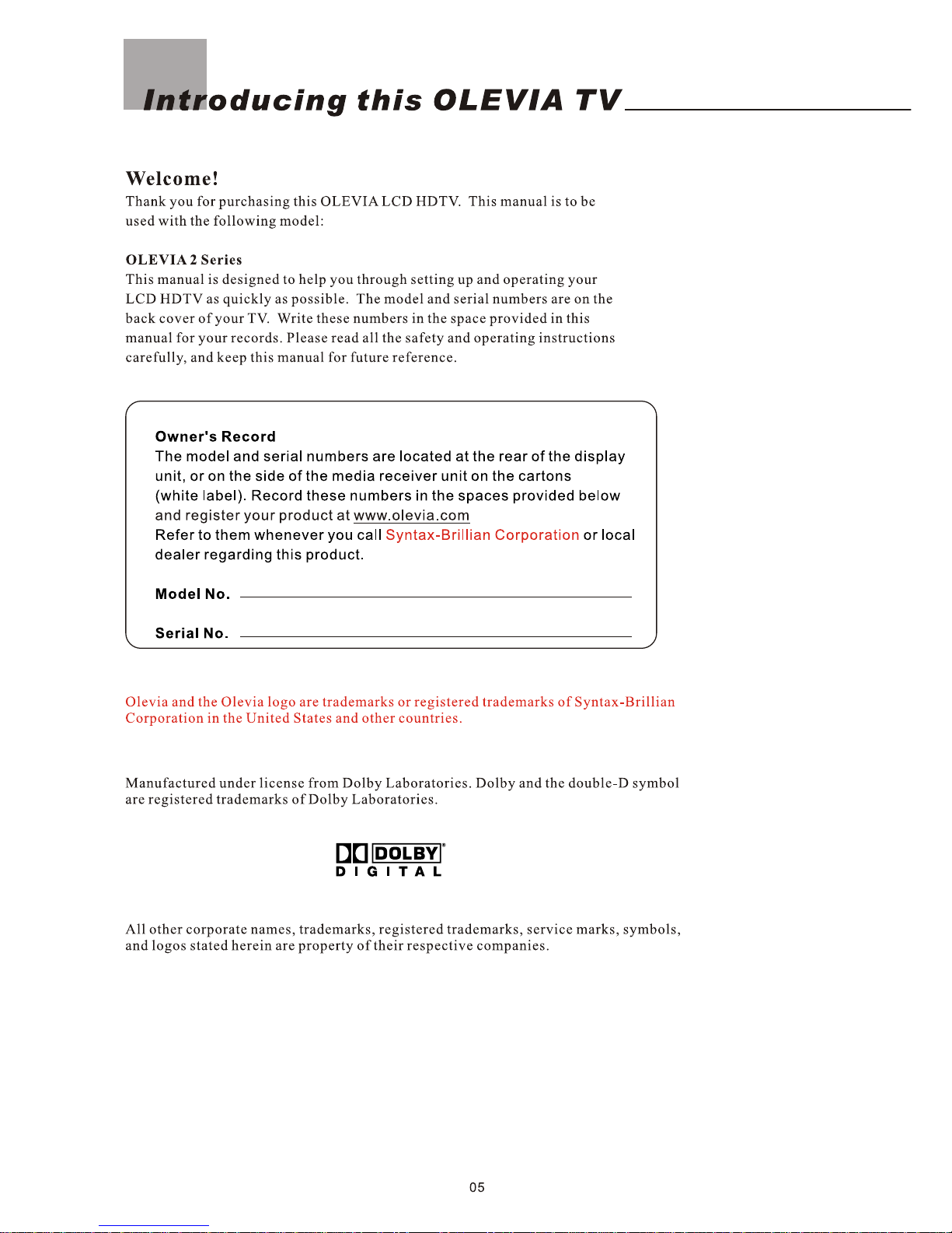 Olevia 237T Manuale utente