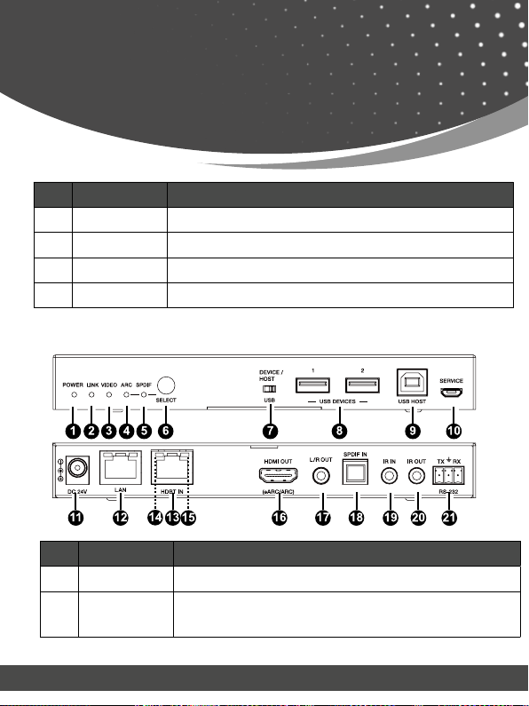 de-embedding to TX’s HDMI audio only and SPDIF output ports, USB 2.0 (Host/