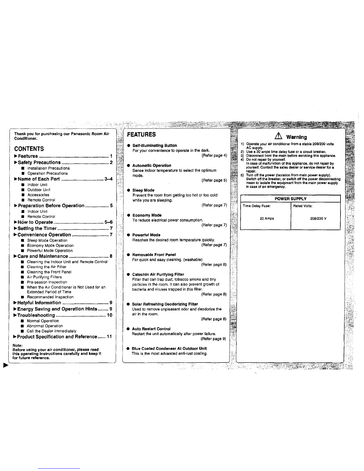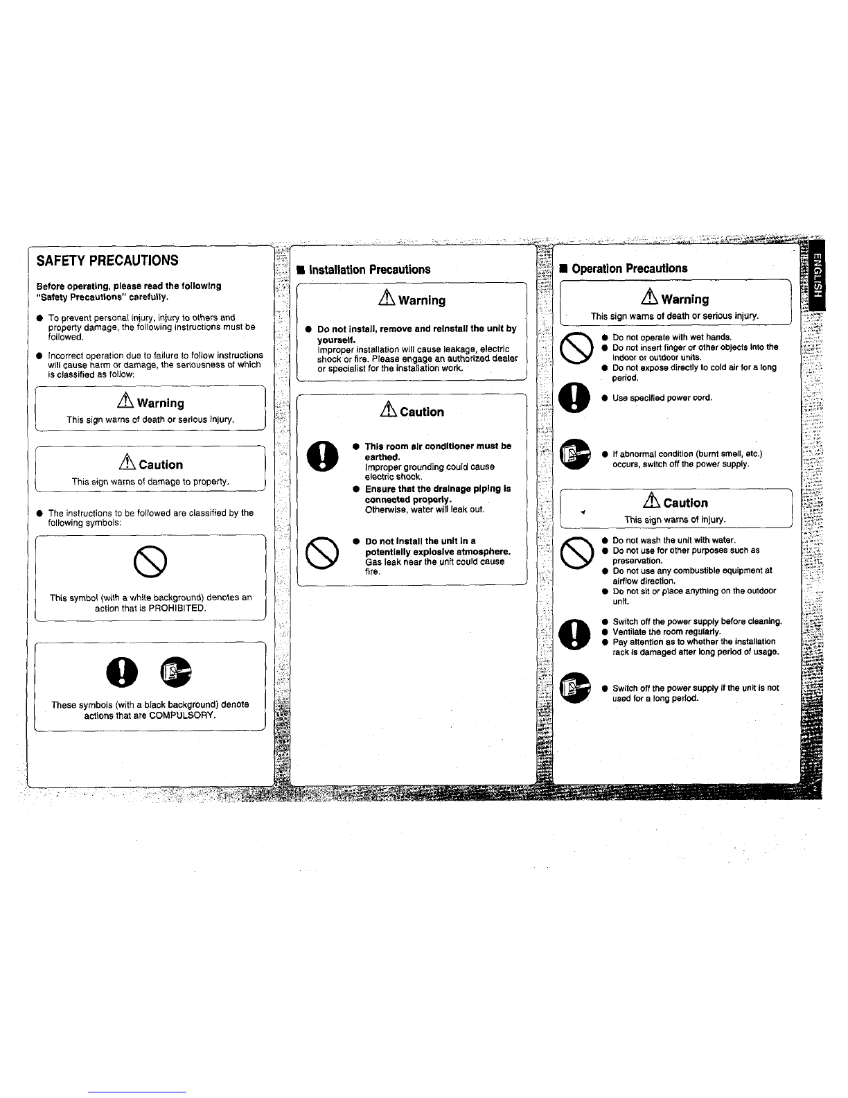 •When the Air Conditioner is Not Used