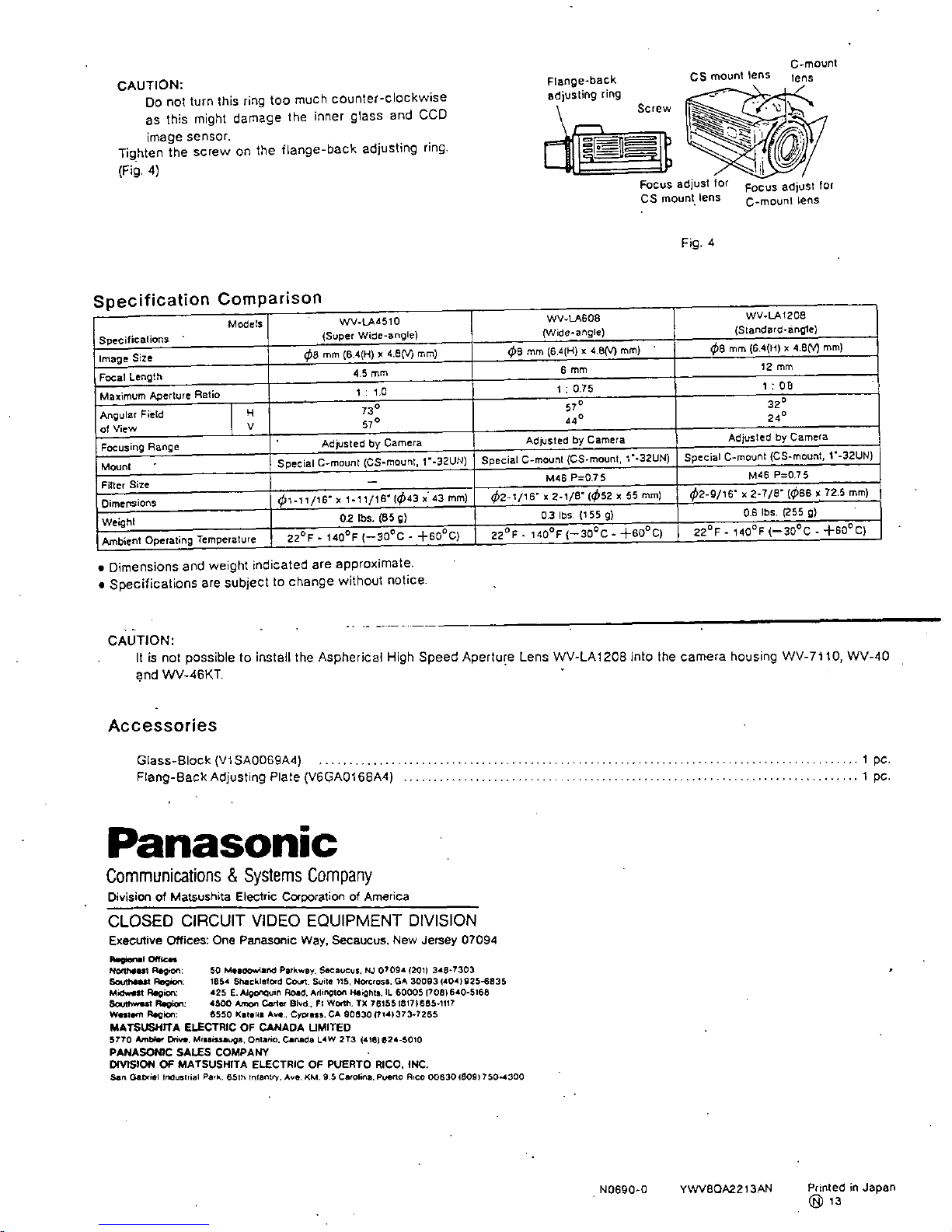 Panasonic WVLZ6115 - ZOOM LENS Manuale utente