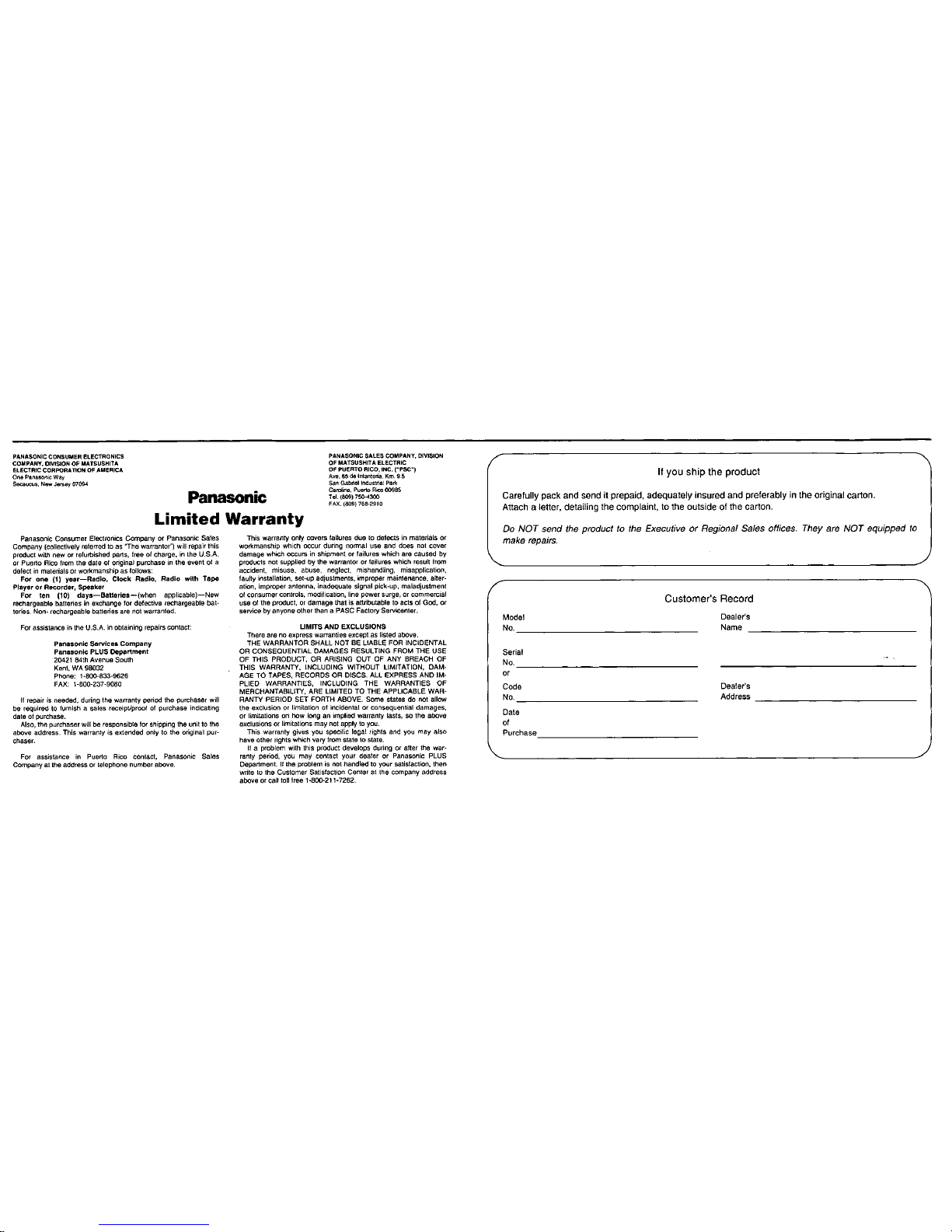 Altri manuali Panasonic Lettore di cassette