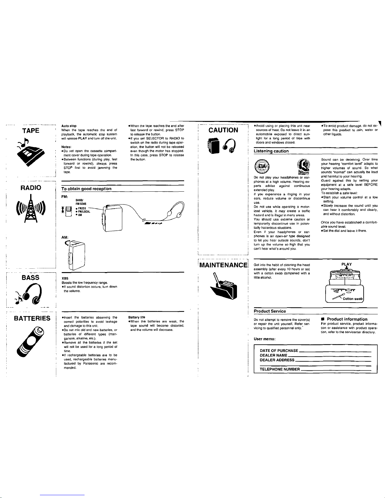 Panasonic RQSX77V - PERSONAL STEREO Manuale utente