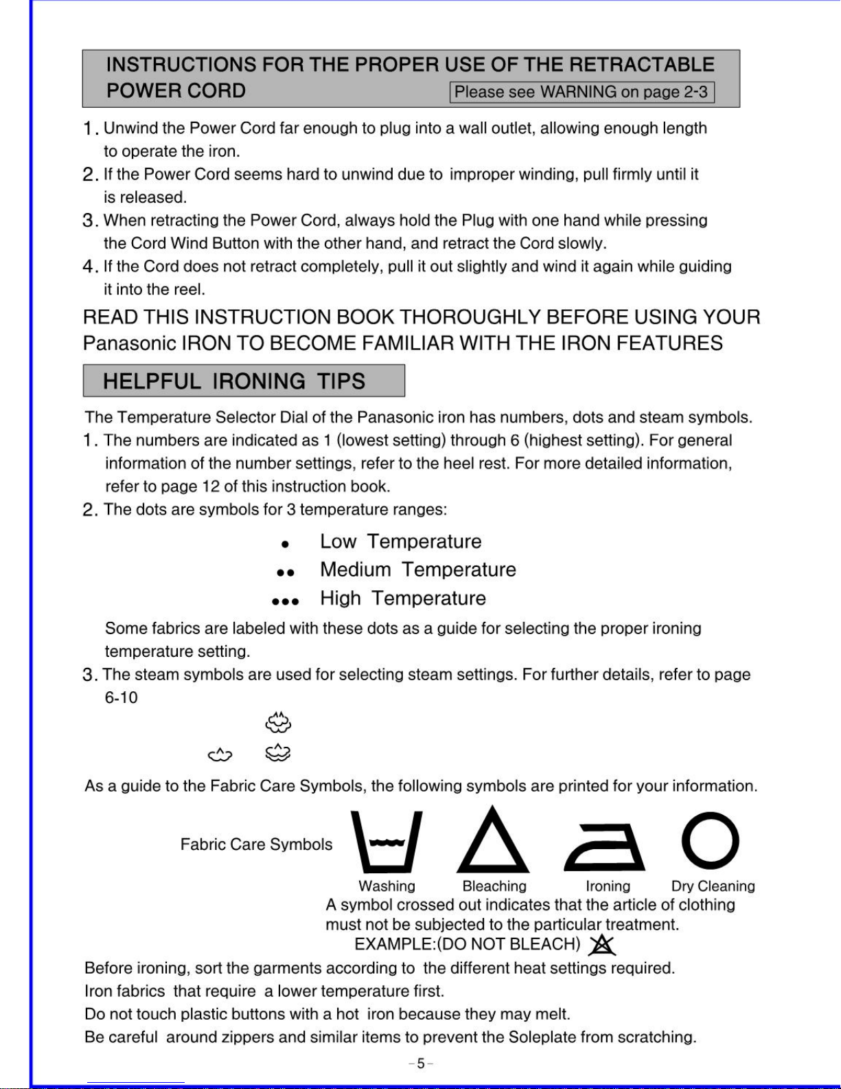 Panasonic NI33GX - ELEC. STEAM IRON-LOW Manuale utente