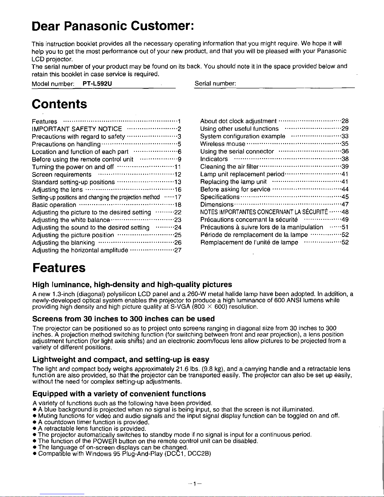 Altri manuali per PTL592U - LCD PROJECTOR