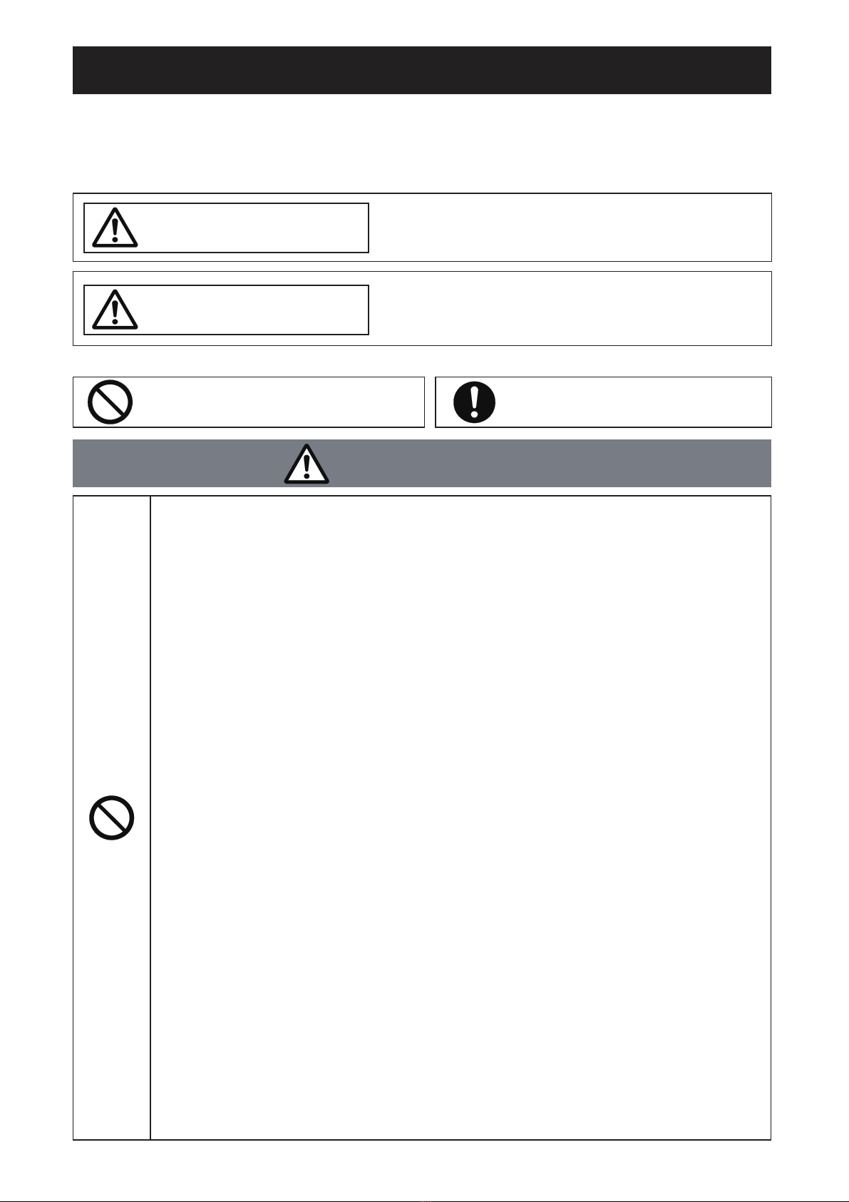 The following symbols are used to classify and describe the type of instructions to be observed.