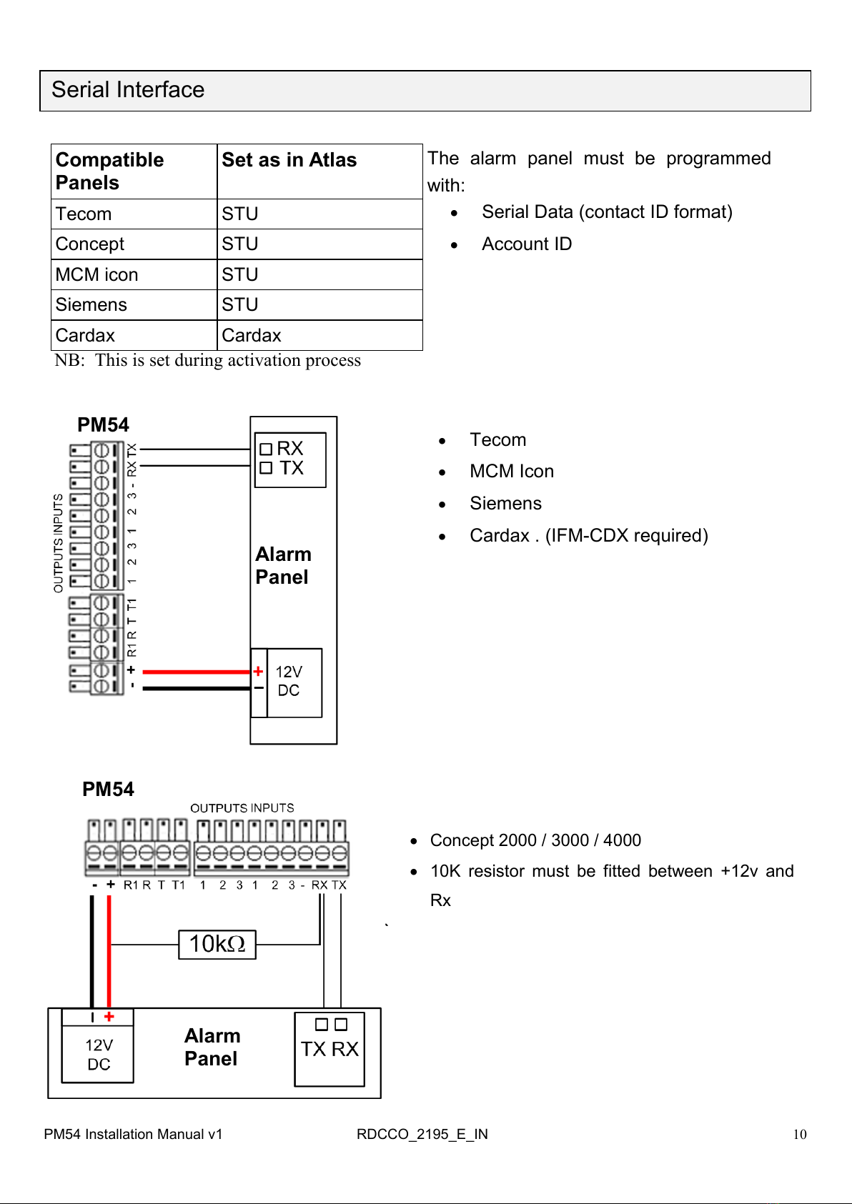PM54 to connect the alarm panel.