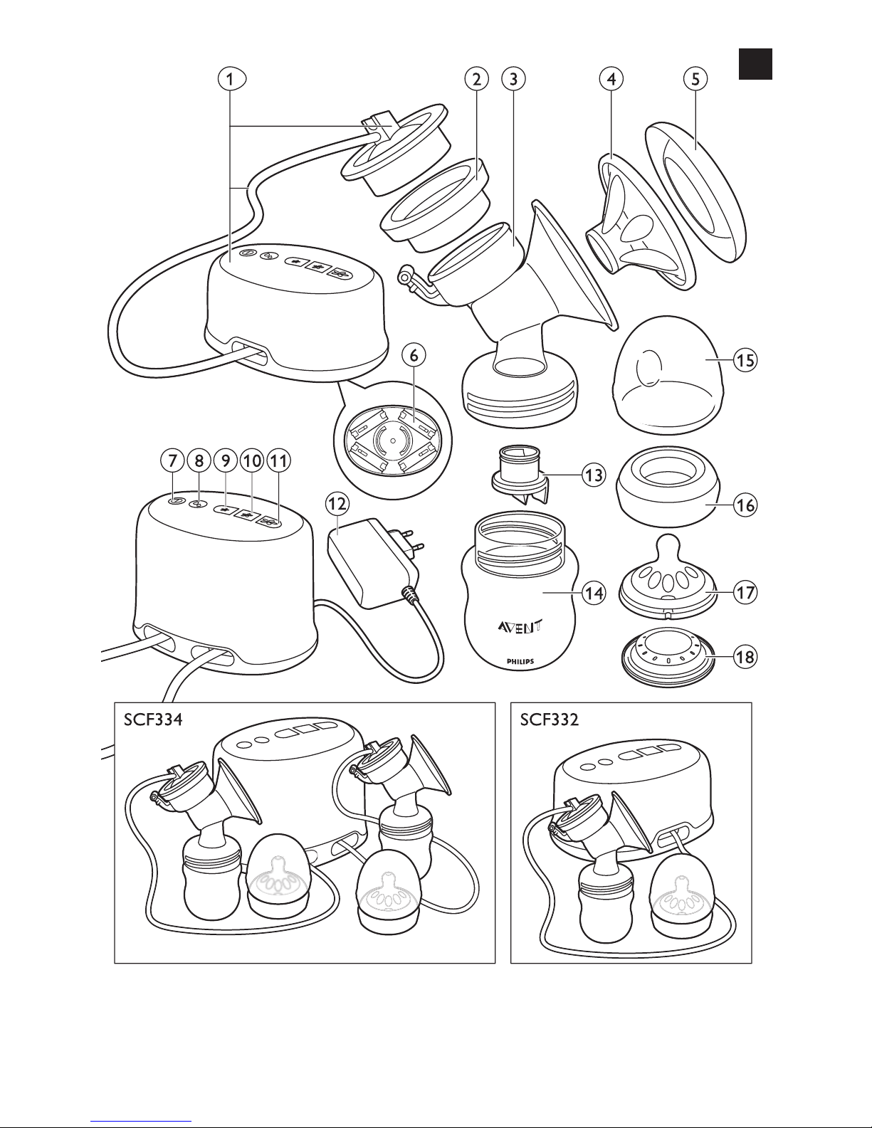 SCF334:The twin electric breast pump enables you to express milk from both breasts at the same