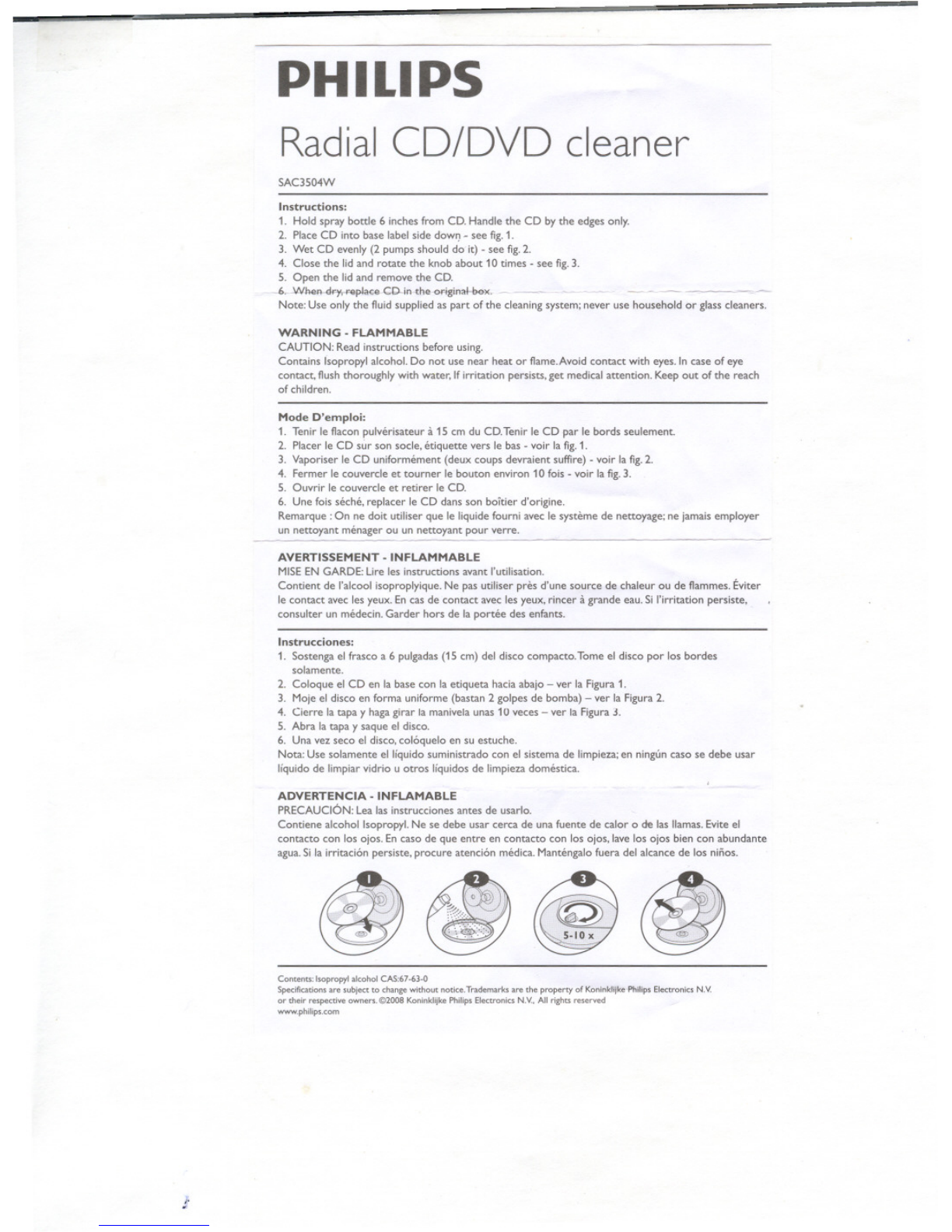 1. Tenir Ie flacon pulverisateur a 15 cm du CD.Tenir Ie CD par Ie bords seulement.