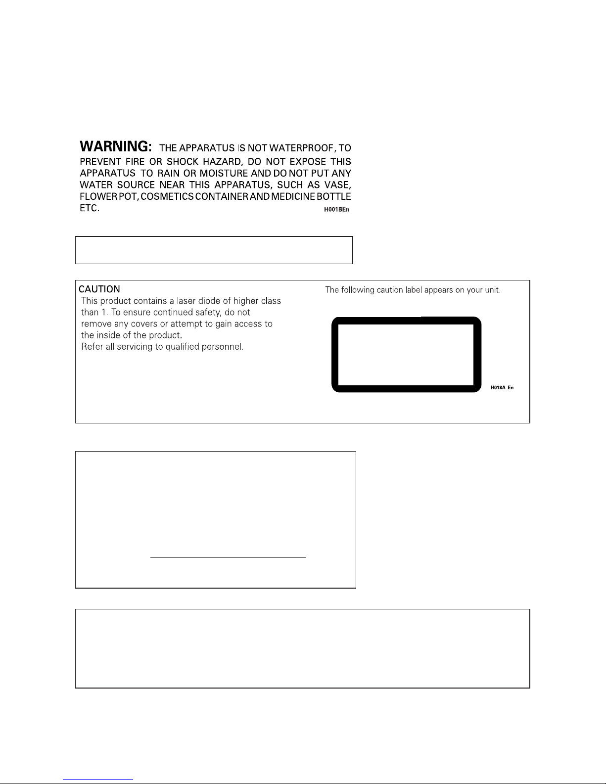OBJECT AND LIQUID ENTRY - Never push objects of any kind into this product. Touching dangerous voltage