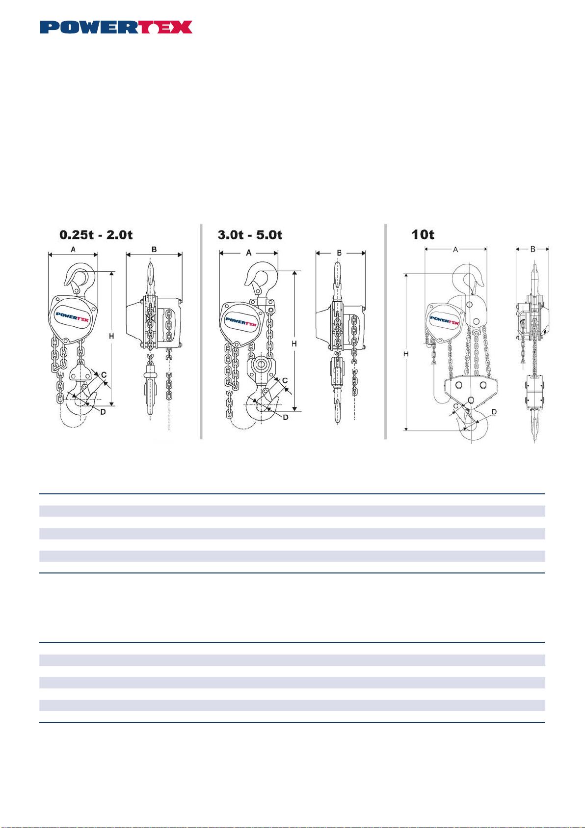 Charge max. tonnes 0,25 0,5 1 2 3 5 10