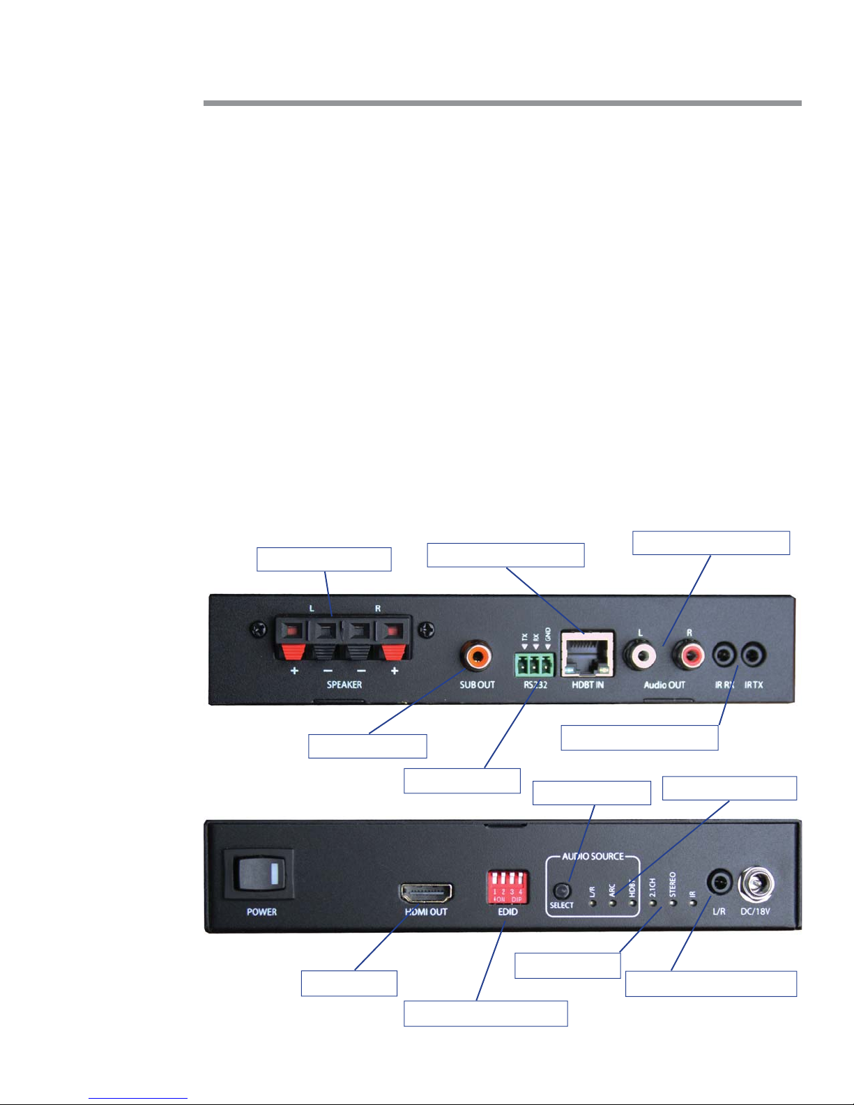 source device, press the audio Source Selector buon unl the HDBT indicator is illuminated.