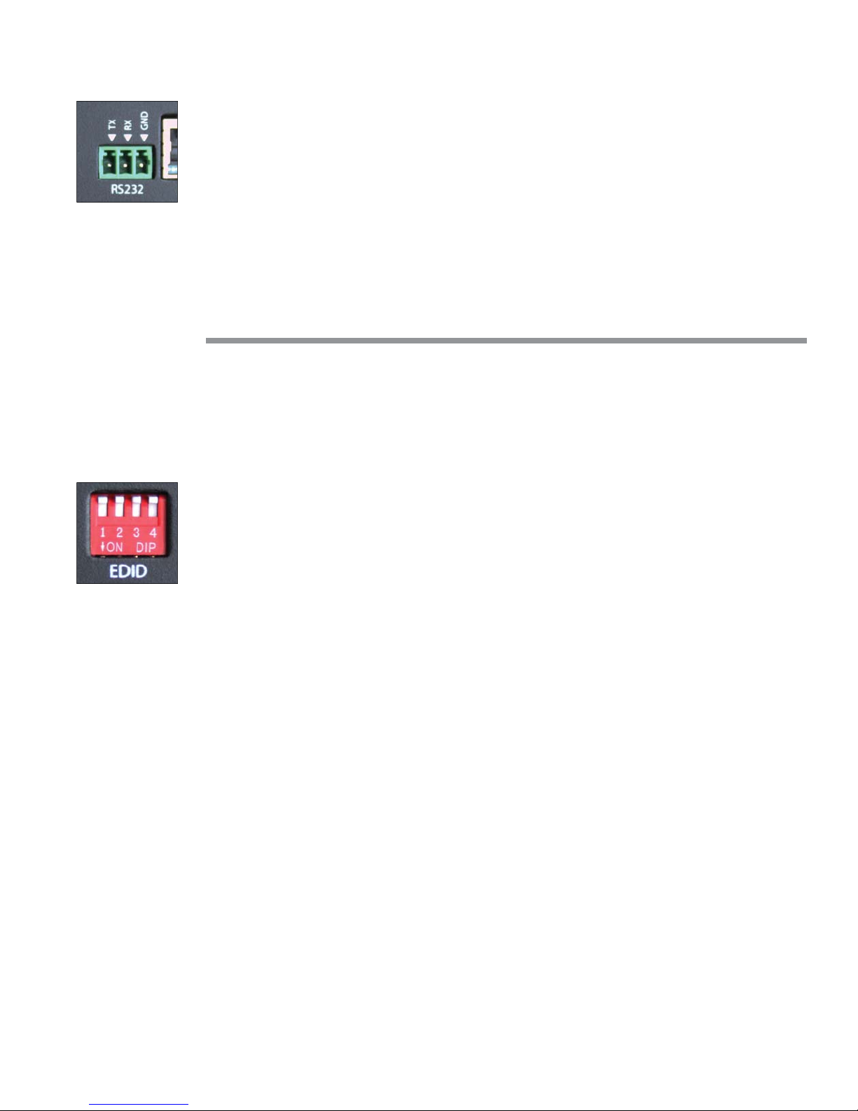 cates link status. The amber (right) LED indicates video and HDCP signal presence.