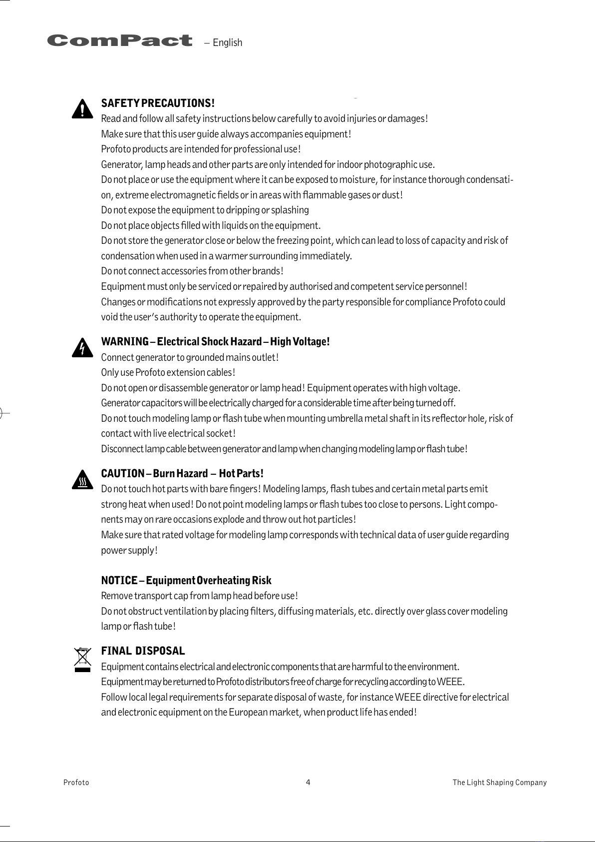EquipmentmaybereturnedtoProfotodistributorsfreeofchargeforrecyclingaccordingtoWEEE.