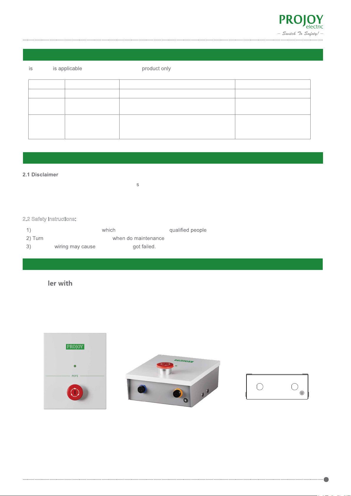 specifica-tions recommended and referred to in this specification. PROJOY assumes no responsibility for the damage of the