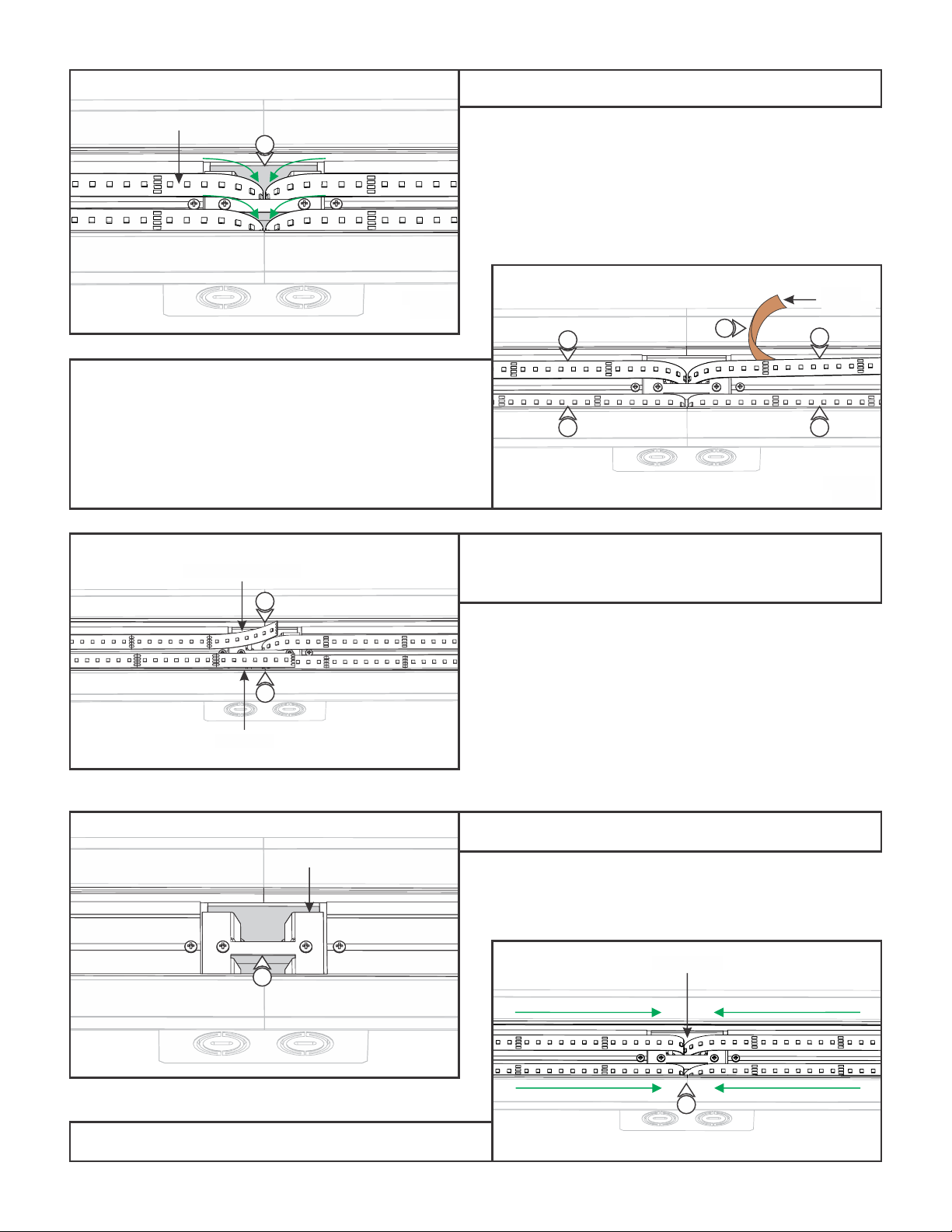 8: On the same side of the channel, the second Flexible Connector should overlap the first LED strip and Flexible Connector.