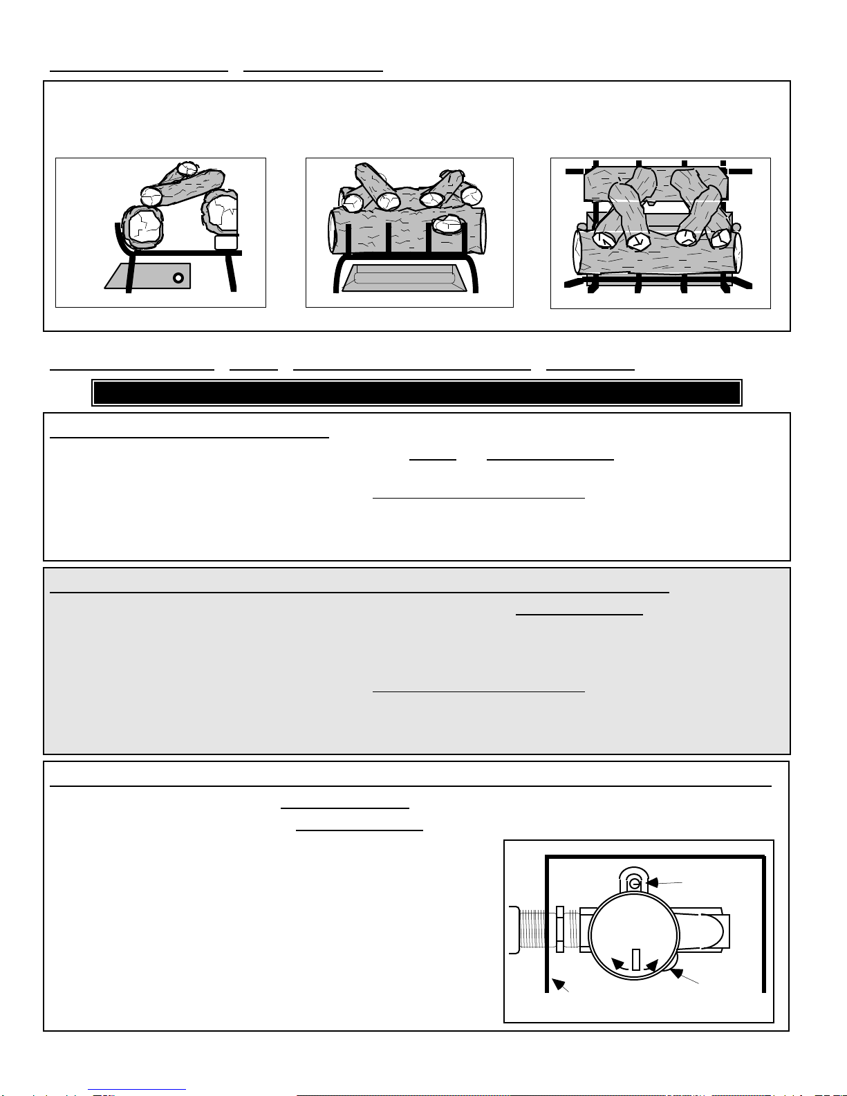 DAMPER MUST BE FULLY OPEN WHEN BURNING A GAS LOG SET. Never burn wood with your gas log set as this