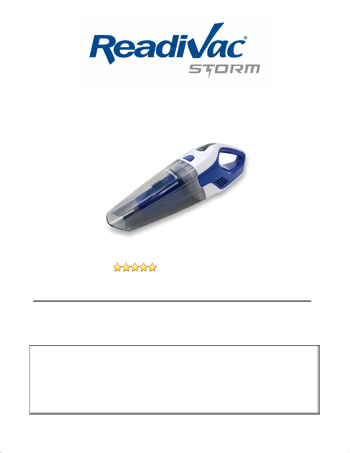 of this ReadiVac®product in normal household conditions. Use of this ReadiVac®product in a commercial setting voids any stated