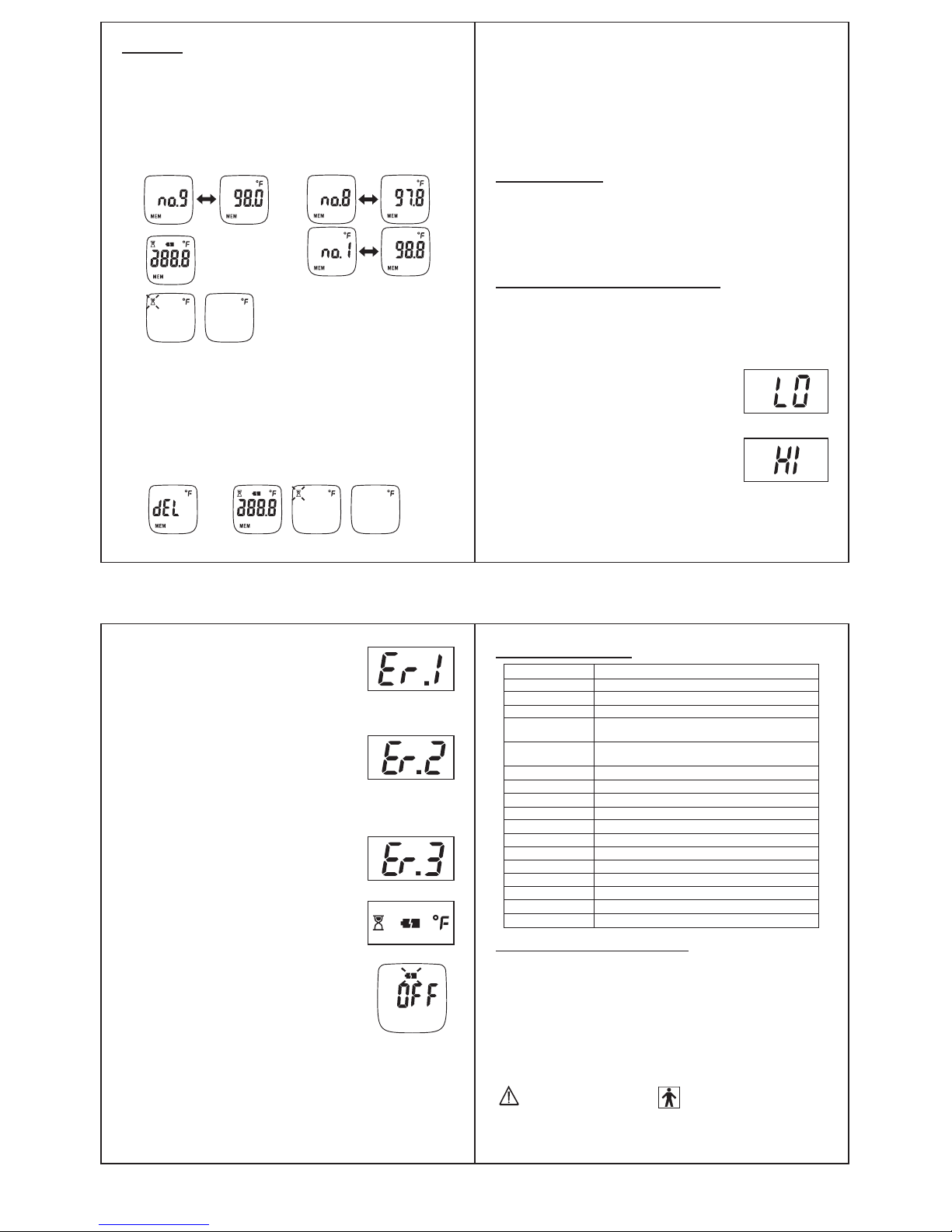 11. Deje de usar el termómetro si funciona de manera irregular o si la pantalla no