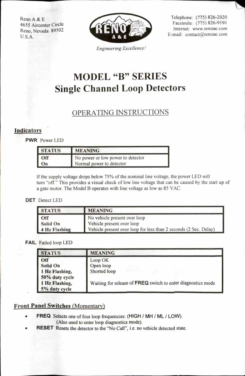 Reno A&E B Series Manuale utente