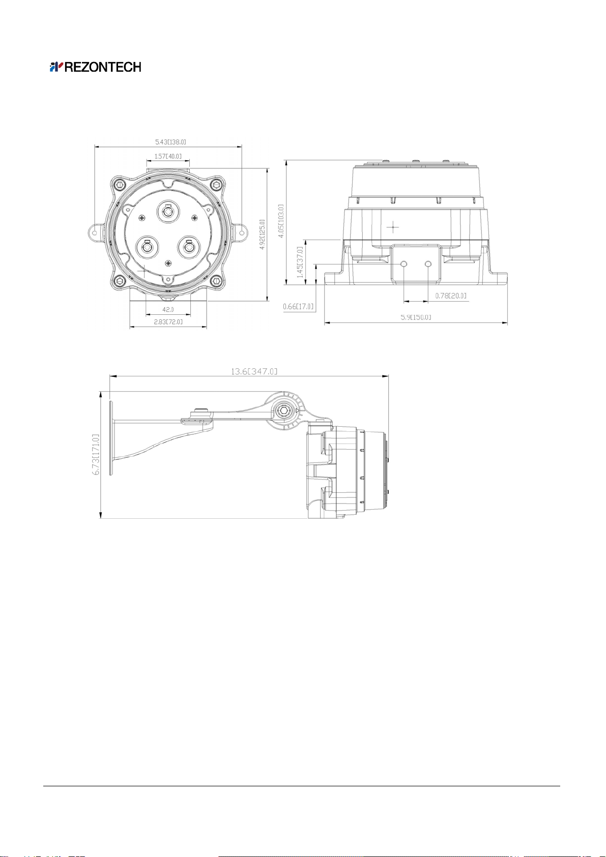 ㆍ Dimension(Overall) : W5.9[150] × H6.7[171] × D13.6[347] (inch[mm])