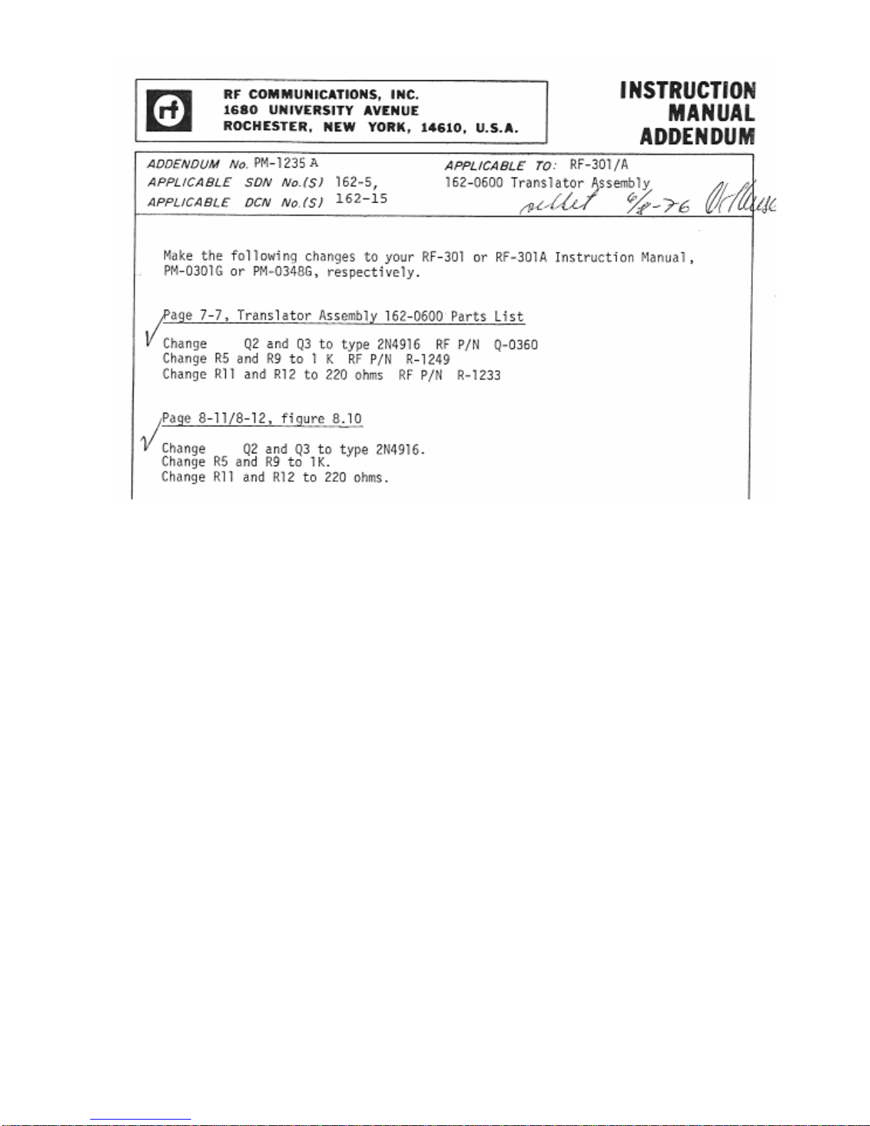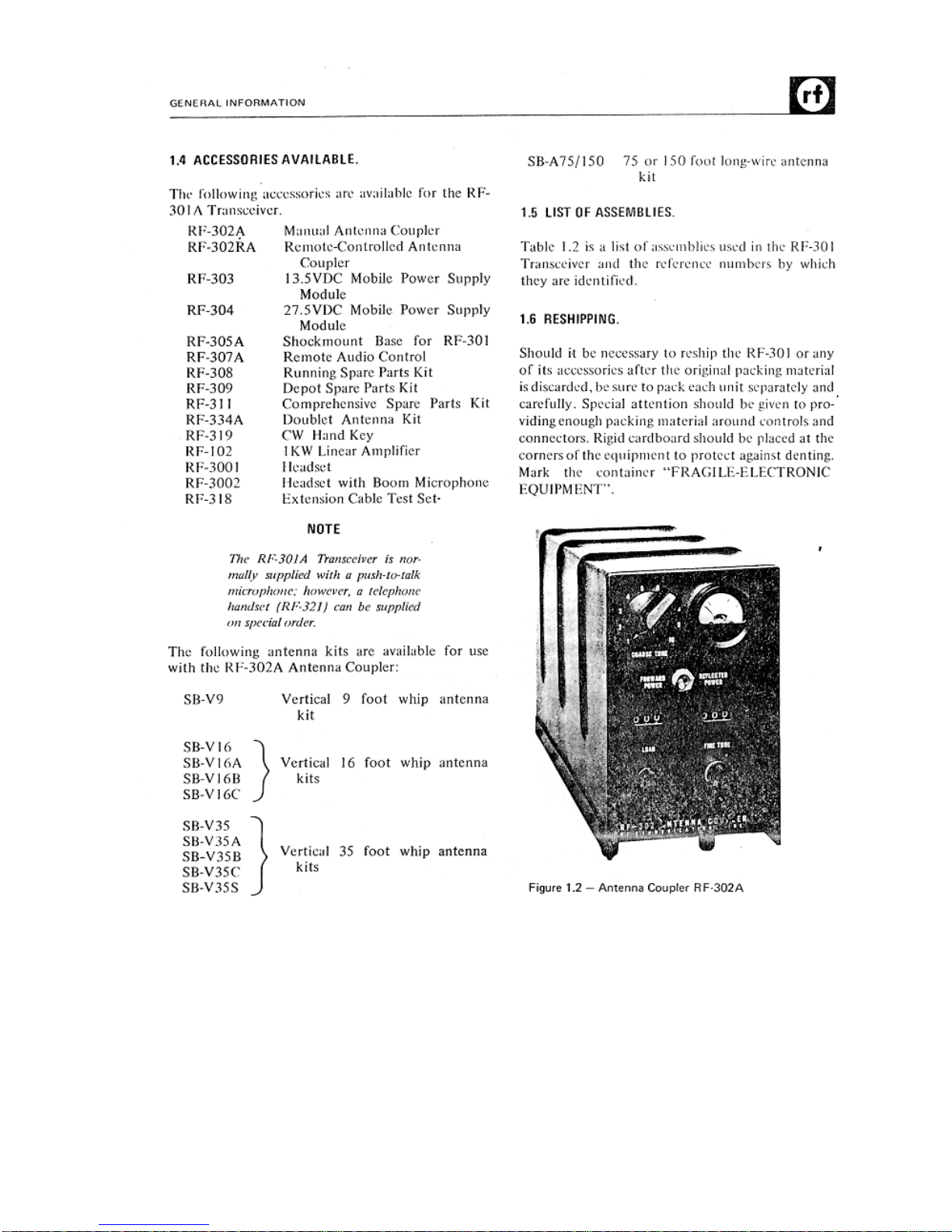 RF Communications RF-301A Manuale utente