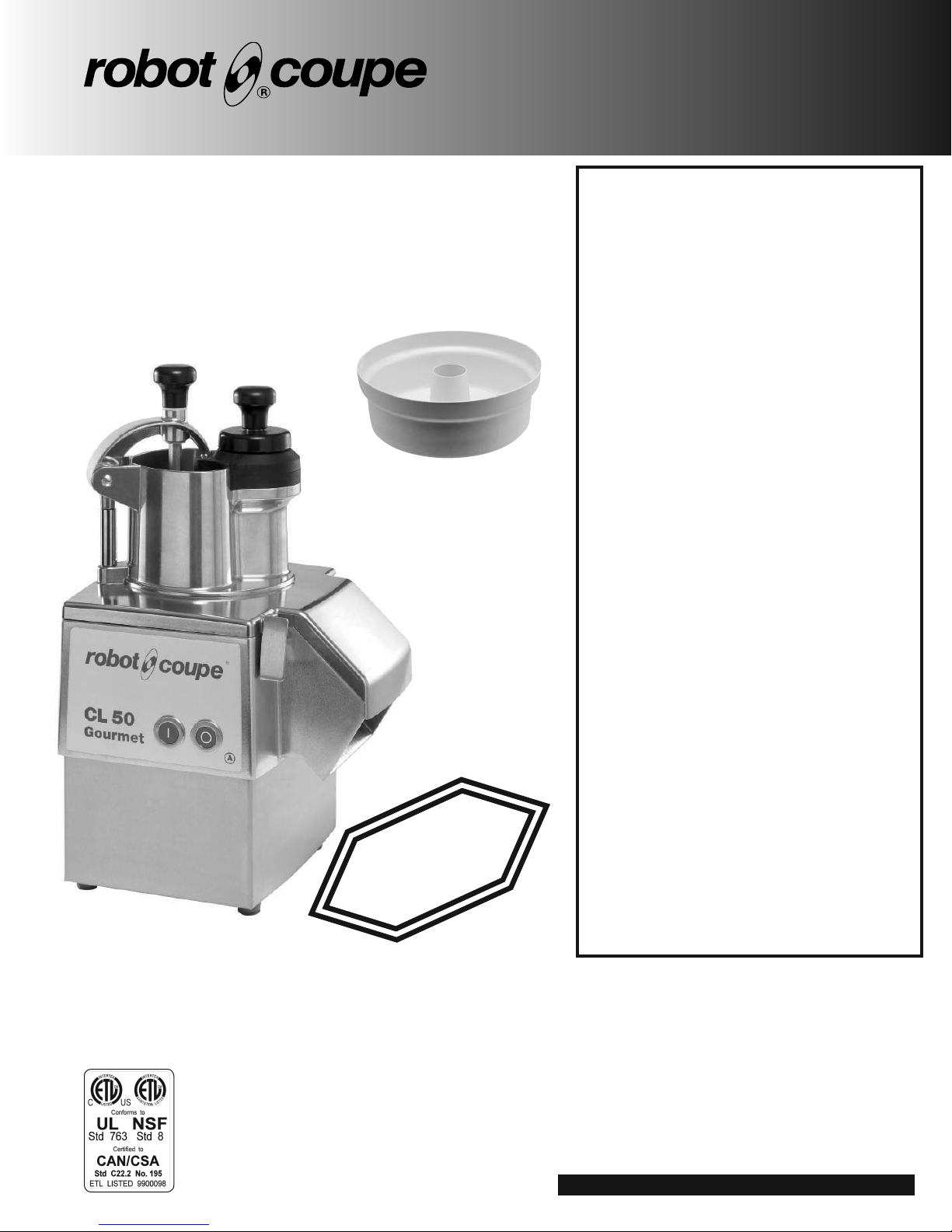© 2003 Robot Coupe U.S.A., Inc. LItho in U.S.A. WKK 06/03