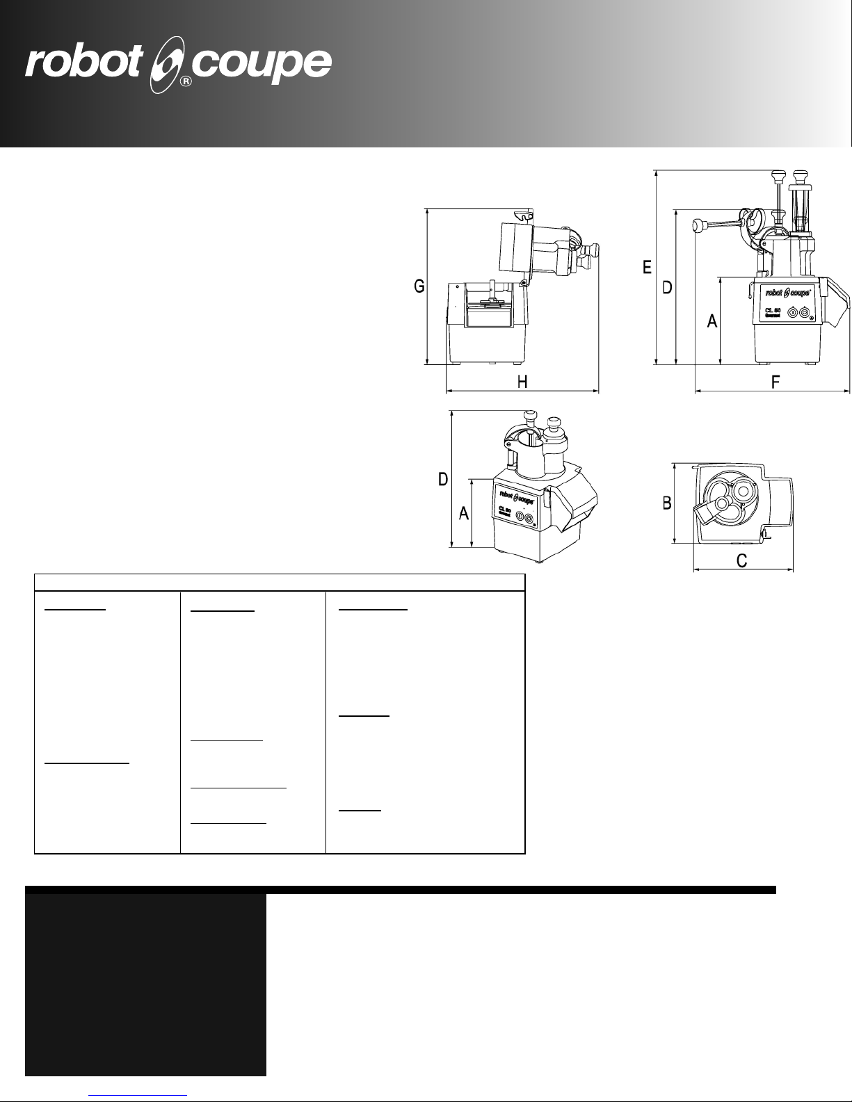 Robot Coupe reserves the right to change specifications. Call the factory for latest specifications and recommendations.