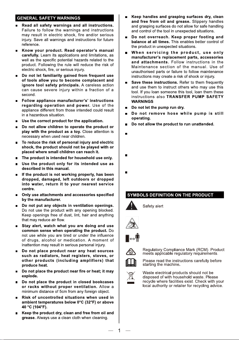 suction hose before operation. The strainer prevents