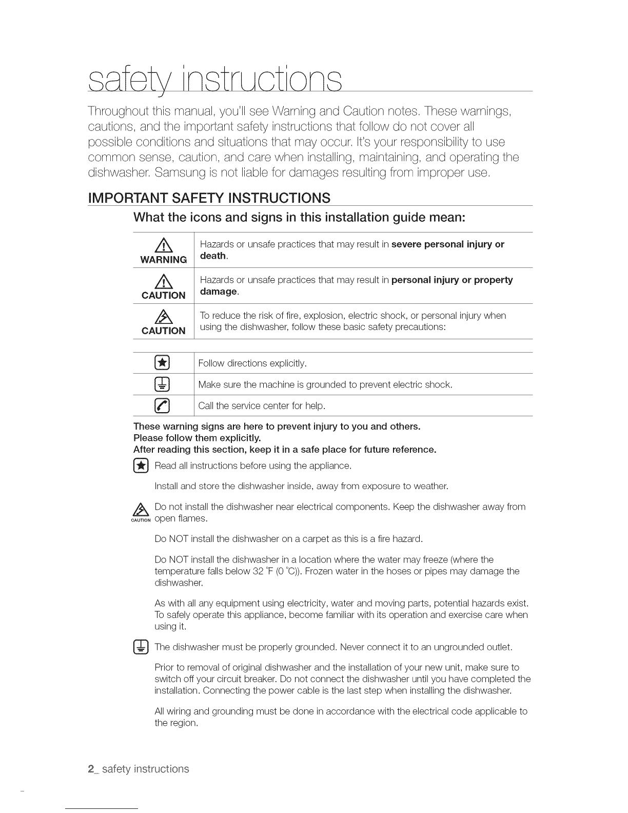 dishwasher. Samsung is not liable for damages resulting from improper use.