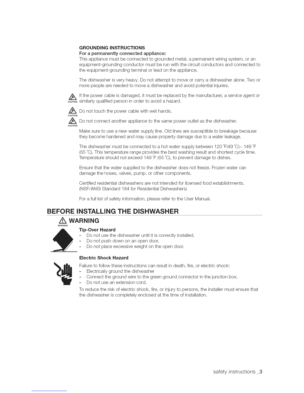 Prior to removal of original dishwasher and the installation of your new unit, make sure to