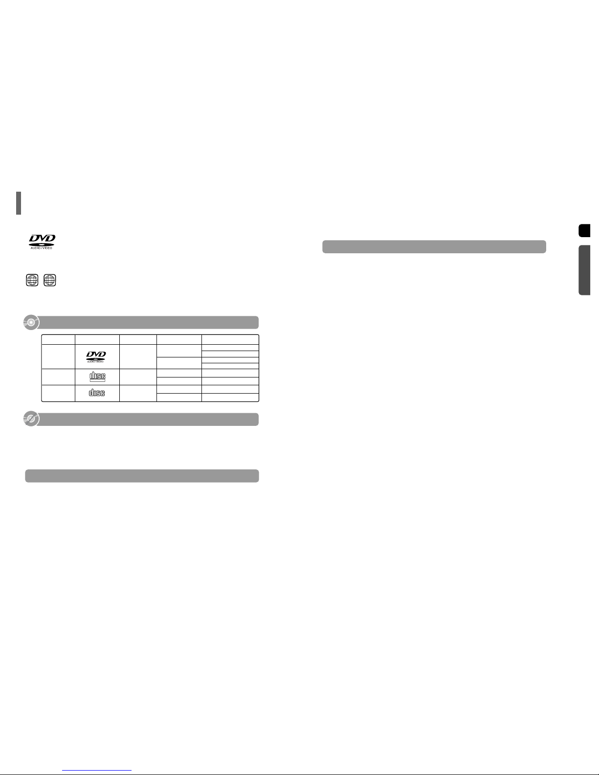 discos, incluyendo los discos DVD-AUDIO, DVD-VIDEO, VCD, CD, MP3-CD, DivX, CD-R/RW,
