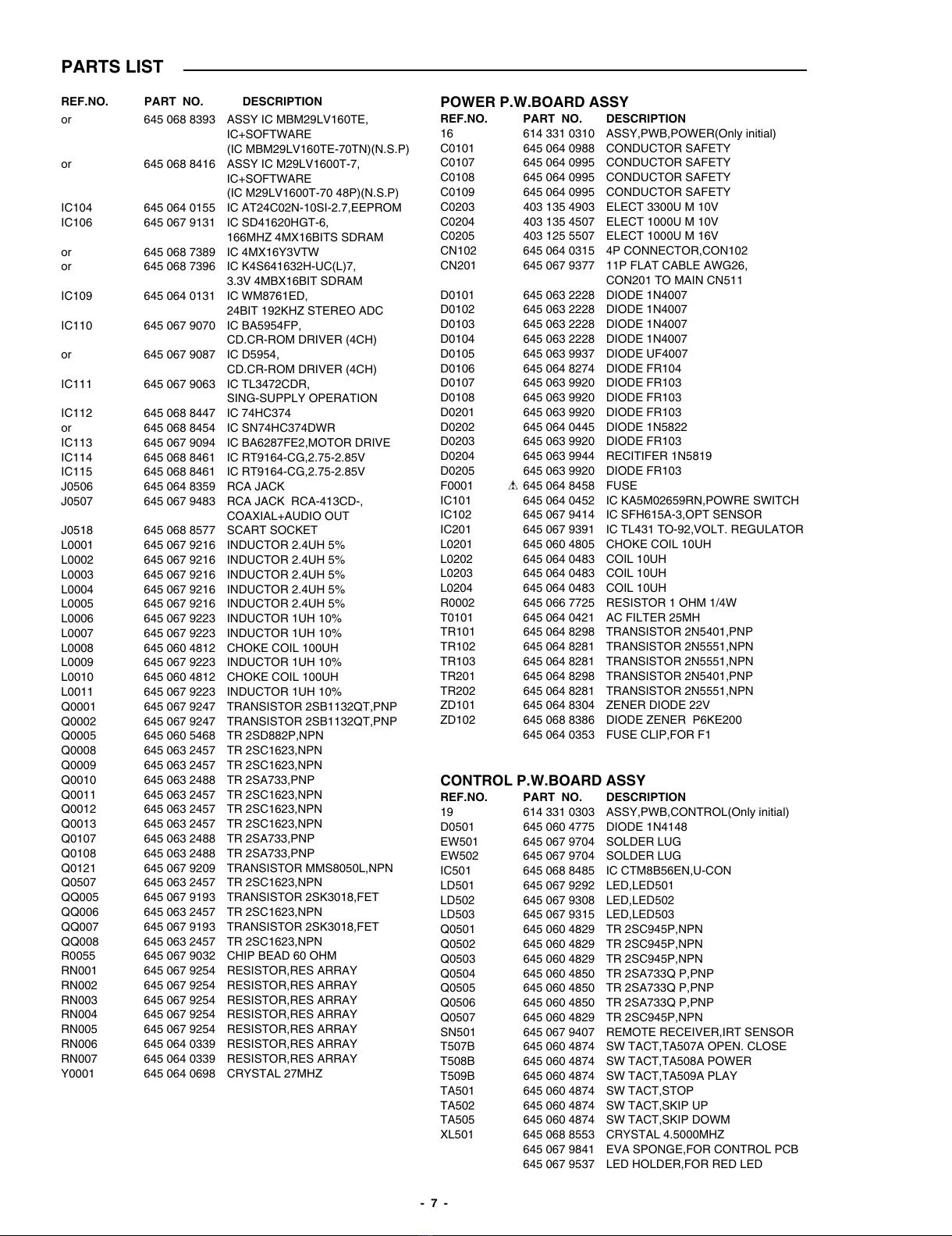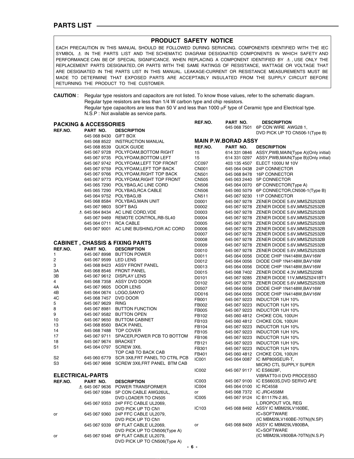 PARTS LIST