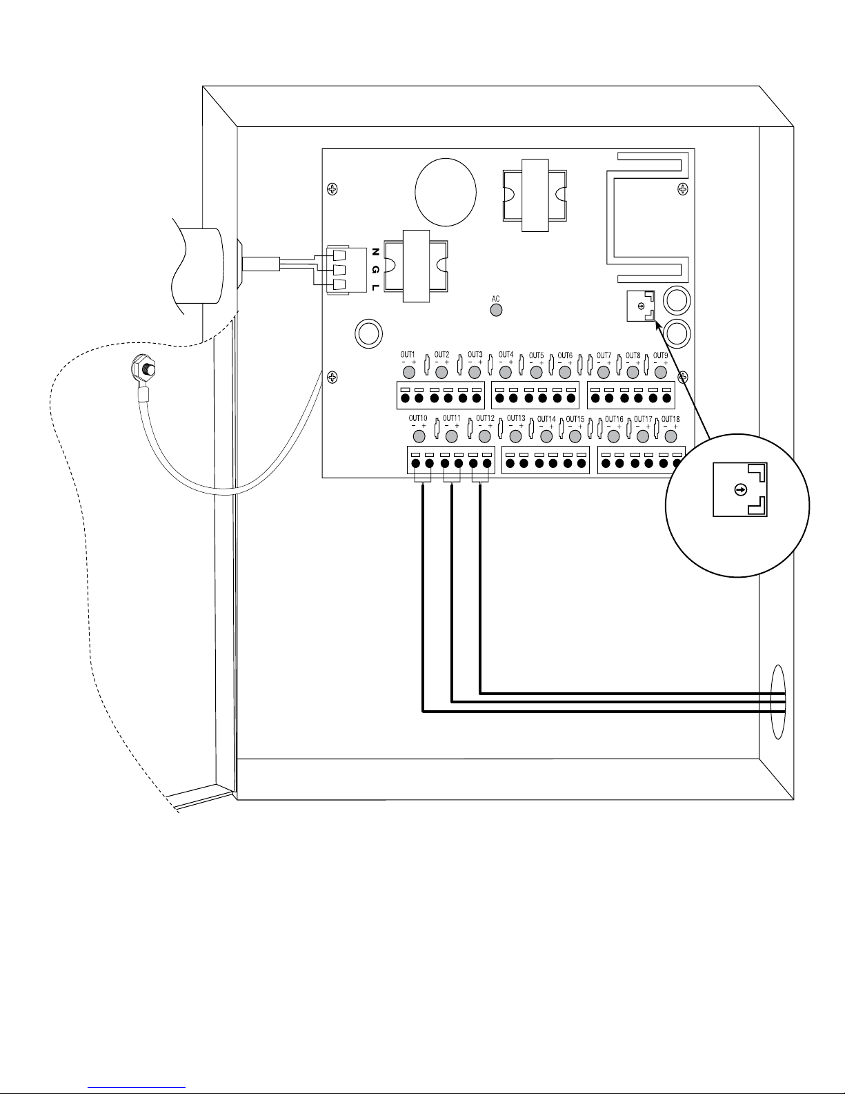 3. Unit is factory set at 12VDC. To adjust output voltage use the trimpot