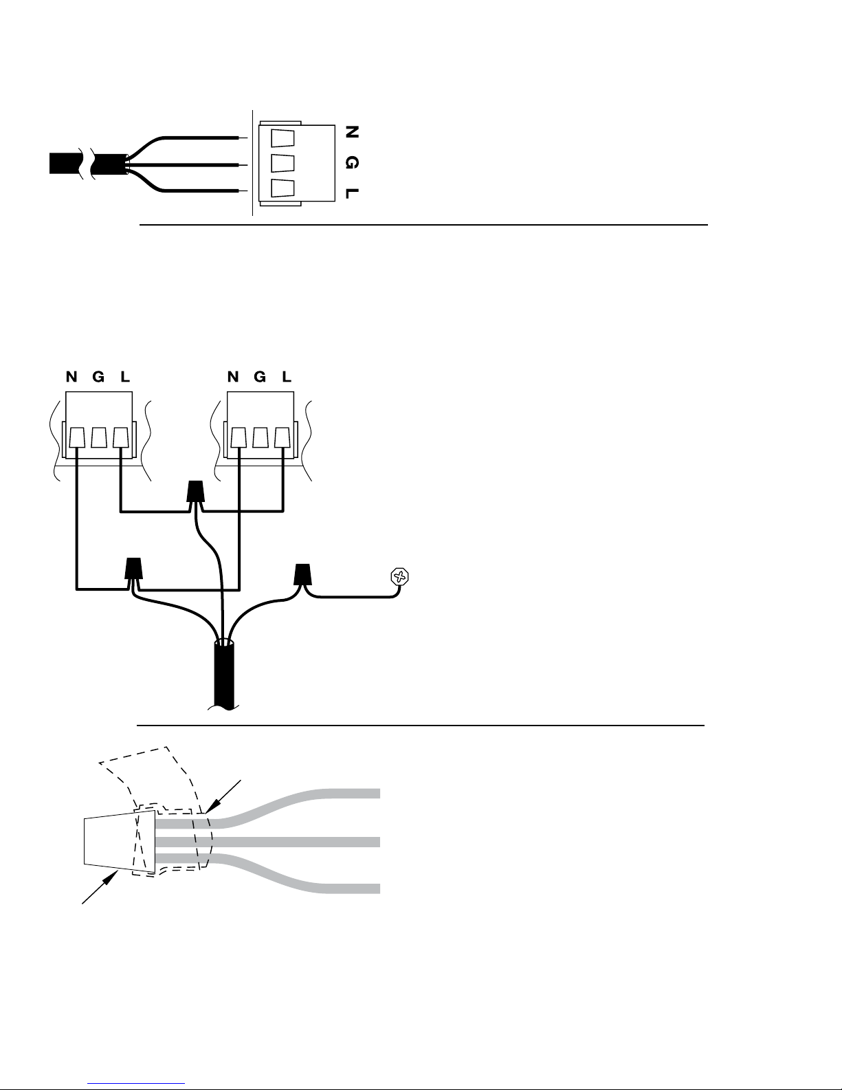 the removable terminals marked [L, G, N] (Fig. 1, pg. 2).